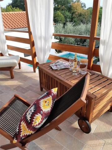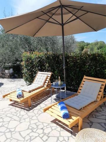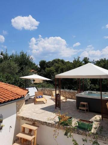 Kuća za odmor smještena je na samom rubu sela, okružena zelenilom i tišinom. Plaža se nalazi 2000m od kuće, a trgovina mješovitom robom dostupna Vam je na samo 5 minuta hoda. Ukoliko ne volite plaže i kupanje u moru, a želite brzo osvježenje, ispred kuće Vam je na raspolaganju vanjski bazen veličine 40 m3 i jacuzzi! Sa zadovoljstvom ćemo Vas dočekati sa svježe pripremljenom hranom i pićem dobrodošlice!