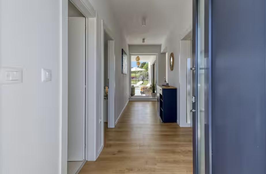 Villa Marina nalazi se u mirnom selu Blaškovići, smještenom tik uz slikoviti gradić Kršan. Ova novoizgrađena moderna prizemnica predstavlja idealno mjesto za bijeg od gradske vreve i opuštanje u prirodnom okruženju. Unutar kuće nalazimo tri prostrane spavaće sobe, svaka sa vlastitom kupaonom. Dvije spavaće sobe imaju direktan izlaz na terasu bazena. Prostrani dnevni boravak sa blagovaonom i kuhinjom omeđen je staklenom stijenom, pružajući obilje dnevnog svijetla. Kuhinja je opremljena svim potrebnim aparatima i priborom te predstavlja idealno mjesto za pripremu ukusnih obroka. Iz dnevnog boravka izlazi se na djelom natkrivenu i nenatkrivenu terasu bazena a iz kuhinje je moguć izlaz na drugu terasu, kako bi bilo moguće koristiti prostor na suncu ili u sjeni, ovisno o dobu dana i godine. Na terasama se nalaze udobne garniture i ležaljke te roštilj, savršeno za opuštanje na svježem zraku i pripremu obroka. Villa Marina ima odličnu lokaciju, blizinom gradova Pazina i Labina te obale Rabca.