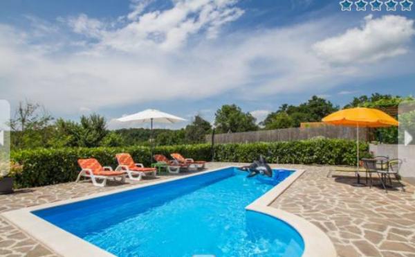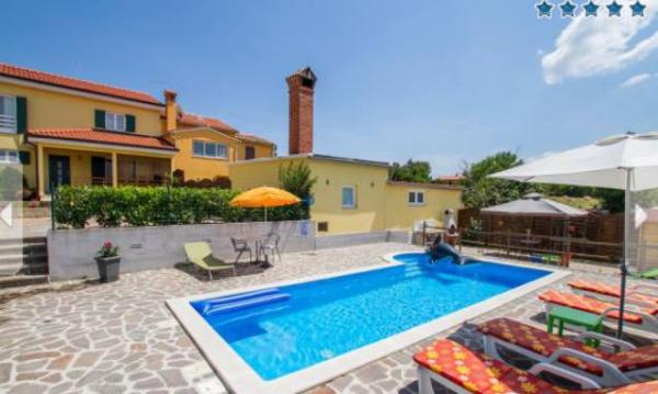 Lijepa i suvremeno opremljena vila u nizu sa bazenom smještena u mirnom mjestu Snašići pokraj Labina. Naselje je okruženo prirodnim ambijentom i zdravim okolišem. Vila je predviđena za smještaj 4 do maksimalno 6 osoba. Dnevni boravak sa TVom, kaučem na razvlačenje i satelitskim programima, suvremeno opremljena kuhinja sa svim uređajima, blagovaona, dvije spavaće sobe sa zasebnim kupatilima i TV uređajima sa satelitskim programima, fitness teretana sa saunom te biljarom i stolnim nogometom sa posebim kupatilom, sve to pruža Vam nezaboravan i ugodan odmor u ovom prelijepom dijelu Istre. Također u sklopu vile nalazi se vanjski bazen sa plažom, ležaljkama, suncobranima, vanjska terasa te terasa i roštilj u blizini bazena. U blizini objekta nalazi se i trgovina. U ponudi su i bicikle za uživanje vožnjom u prirodi.