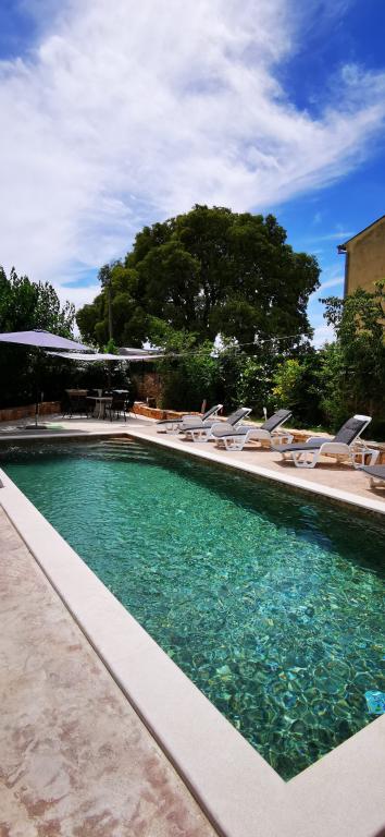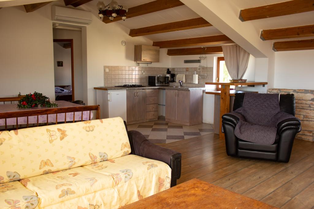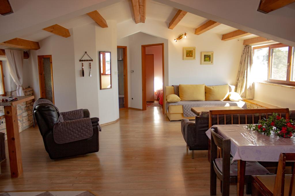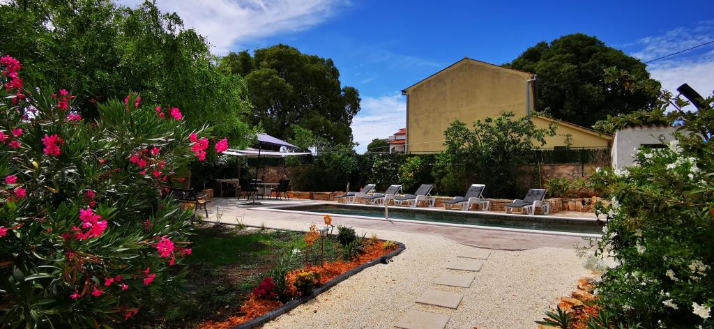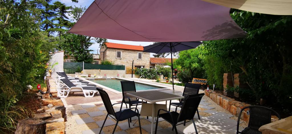 Kuća za odmor nalazi se na istočnoj obali poluotoka Istre, u mirnom selu Muntić u blizini zračne luke u Puli, ali bez buke od zračne luke. Kuća za odmor sa apartmanima izgrađena je od kamena i u potpunosti obnovljena u 2012 i ima tri velika apartmana potpuno odvojena i opremljena. Ispred kuće se nalazi dvorište s kamenim stolom i nasuprot se nalazi ograđen veliki vrt sa bazenom, prostorom za sunčanje, hladovinom od stabala, stolom , roštiljem, parkingom ...