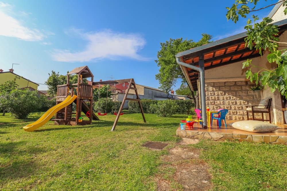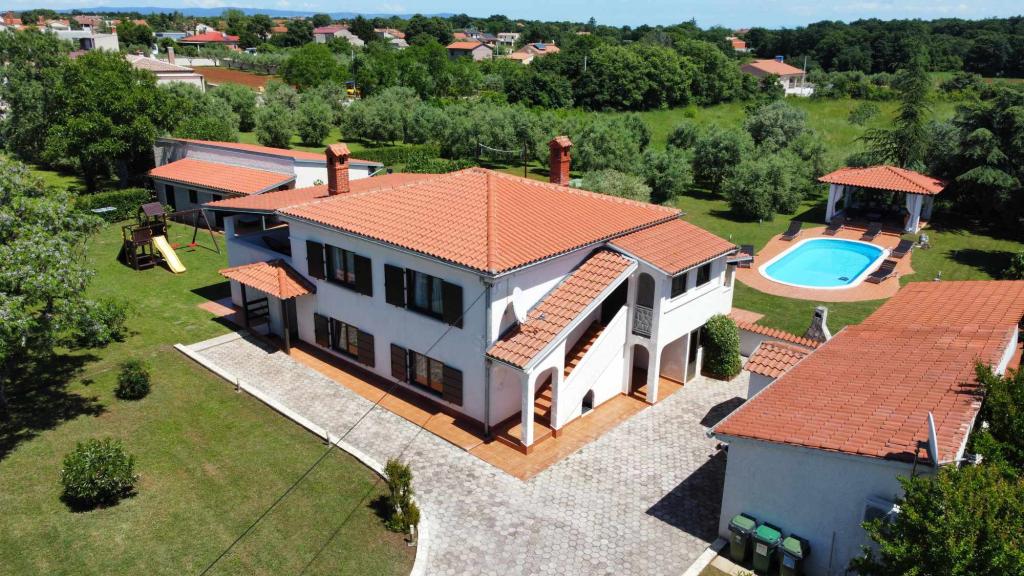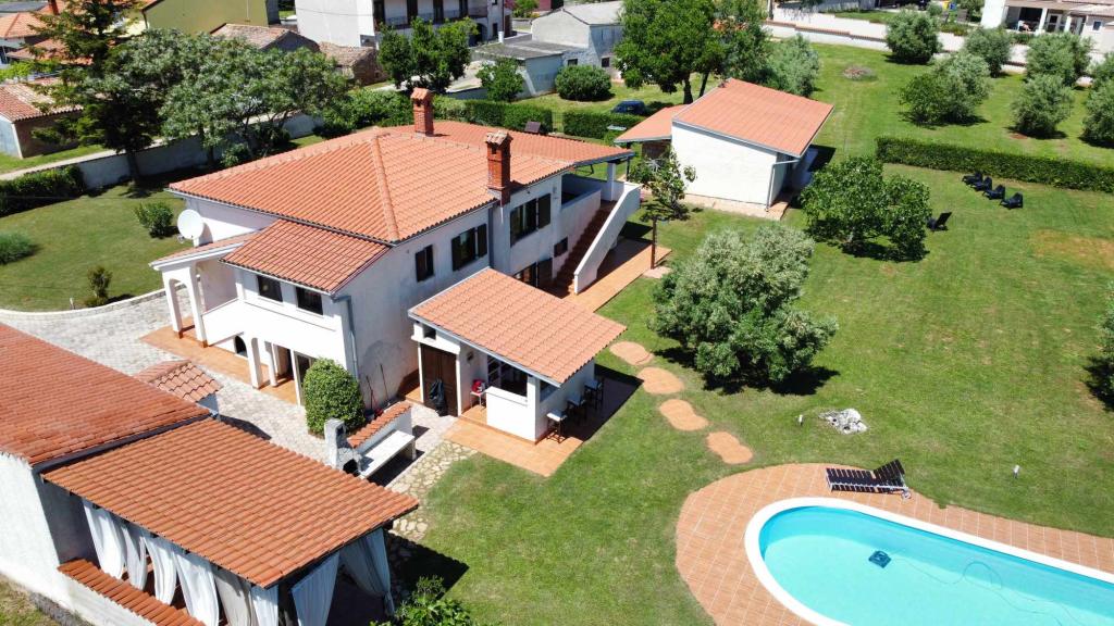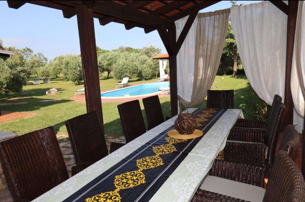 Smještena u mirnom selu Muntić, prekrasna vila Eufemia s tri apartmana idealna je za obitelji i prijatelje. Nudi privatnost, udobnost i brojne sadržaje koji će vaš boravak učiniti posebnim. Vila ima četiri spavaće sobe – dva apartmana s jednom spavaćom sobom i jedan apartman s dvije spavaće sobe. Svaki apartman opremljen je kupaonicom s kadom ili tušem, klimom, kuhinjom te TV-om sa satelitskim programima. Prostrano, ograđeno dvorište od 2000 m² nudi bazen, sjenicu i ljetnu kuhinju s roštiljem, savršeno za uživanje na otvorenom. Terasa prima do 10 osoba, idealna za zajednička druženja. Za rekreaciju, tu su igralište za odbojku, stolni tenis, teretana i sauna, a u večernjim satima možete se opustiti uz biljar u konobi. Vila nudi potpunu privatnost s ograđenom parcelom i tri parkirna mjesta. Mini market udaljen je minutu hoda, a veći supermarketi i grad Pula 10 kilometara. Kućni ljubimci su dobrodošli, što vilu čini savršenim mjestom za odmor cijele obitelji.