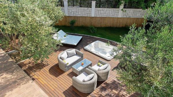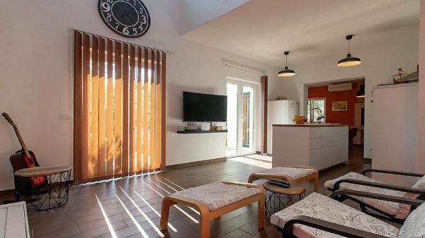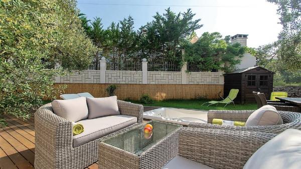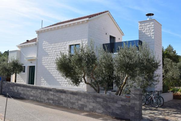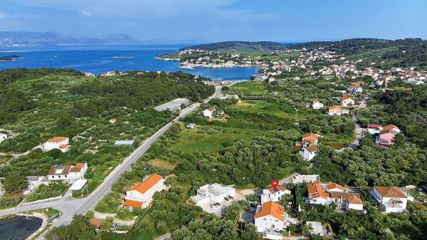 Novoizgrađena kuća u neposrednoj blizini mora (uvala Račišće, Lumbarda). Kuća je izgrađena od najkvalitetnijih prirodnih materijala (kamen, drvo, keramika) i opremljena suvremenom tehnologijom (solarni sustav za toplu vodu, vrhunski inverterski klima uređaji u svim prostorijama) tako da je ugodna za boravak i u vrijeme najvećih vrućina. Okružena je stoljetnim stablima maslina koja prostoru daju poseban ugođaj i draž. Kuća se sastoji od prizemlja s open space dnevnim boravkom, kuhinjom i prostranom blagovaonicom s otvorenim kaminom (grill), spavaćom sobom s francuskim ležajem za dvije osobe i kupaonicom. Prizemlje je okrenuto na vrt i terasu s decking-om od tropskog drveta i jacuzzijem, tako da prostor jamči privatnost i mogućnost opuštanja. Na katu se nalazi velika spavaonica s francuskim ležajem za dvije osobe i vlastitom velikom terasom s pogledom na more i Pelješac. Galerijom se dolazi do luksuzne kupaonice s velikom kadom i balkonom. IZNAJMLJUJE SE CIJELA VILA, NEMA DRUGIH GOSTIJU