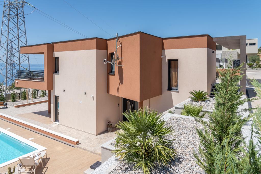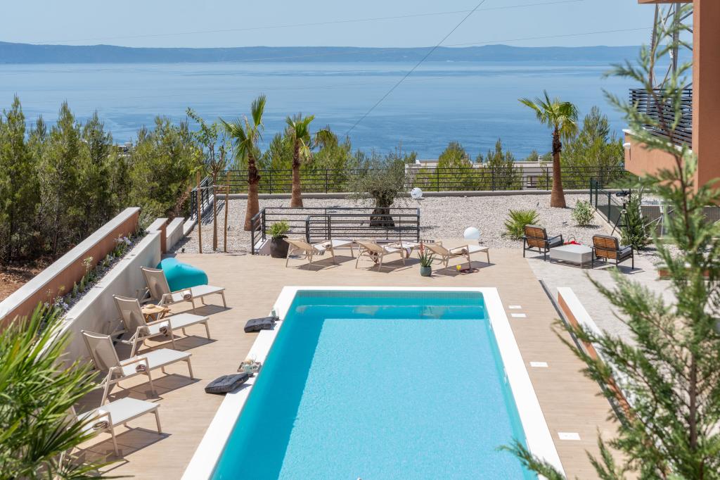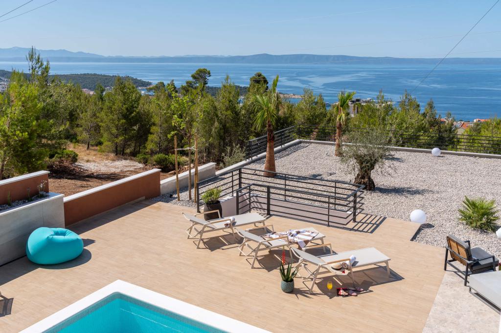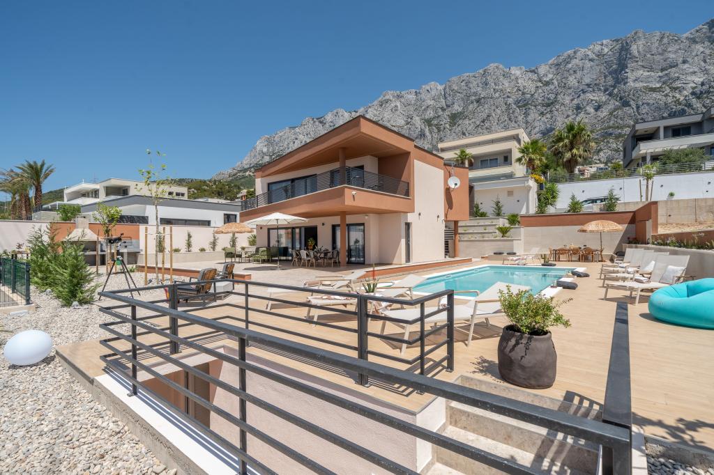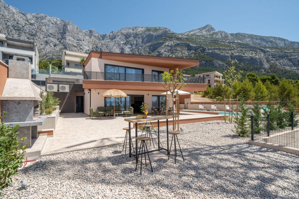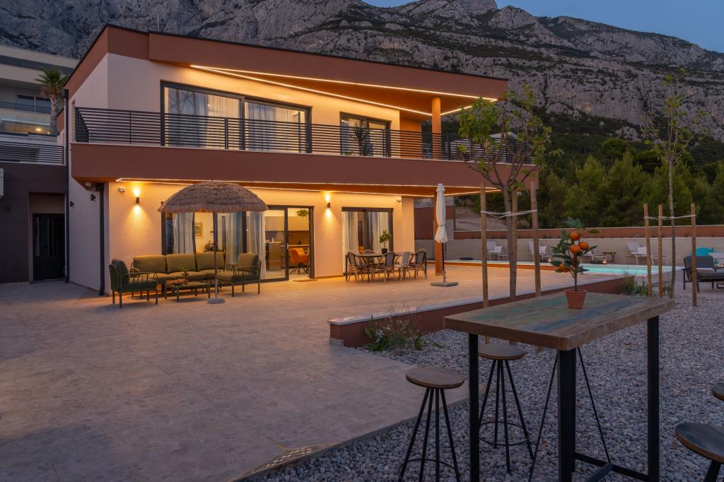 Moderna vila s spektakularnim panoramskim pogledom na azurno more i gorostasno Biokovo – prava luksuzna oaza za obitelji ili grupe do 8 sretnika! Uživajte u privatnom bazenu za osvježavajuće plivanje, roštilju za nezaboravne večeri i prostranom vanjskom lounge području savršenom za opuštanje, romantične trenutke ili vesele obiteljske večere pod zvijezdama. Vaš san u Dalmaciji vas čeka!