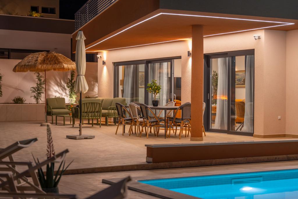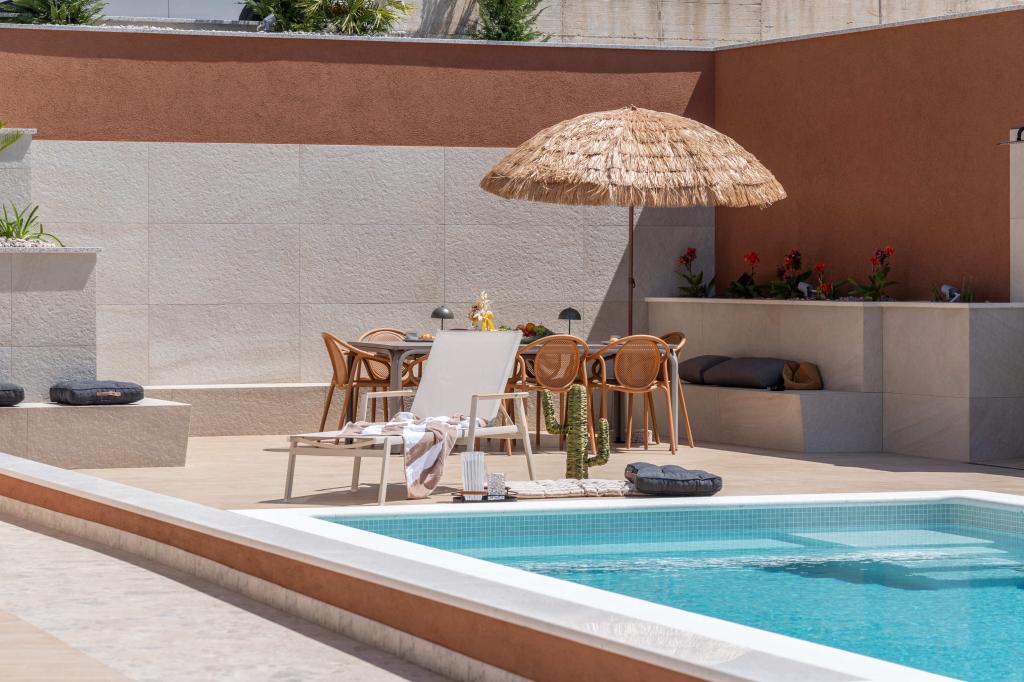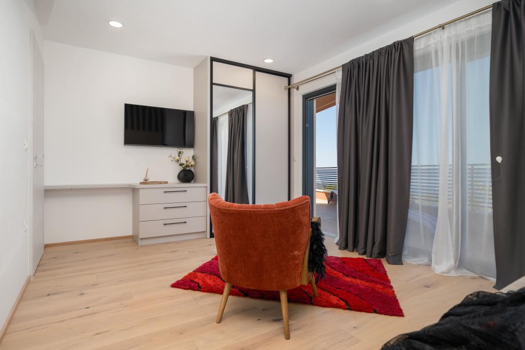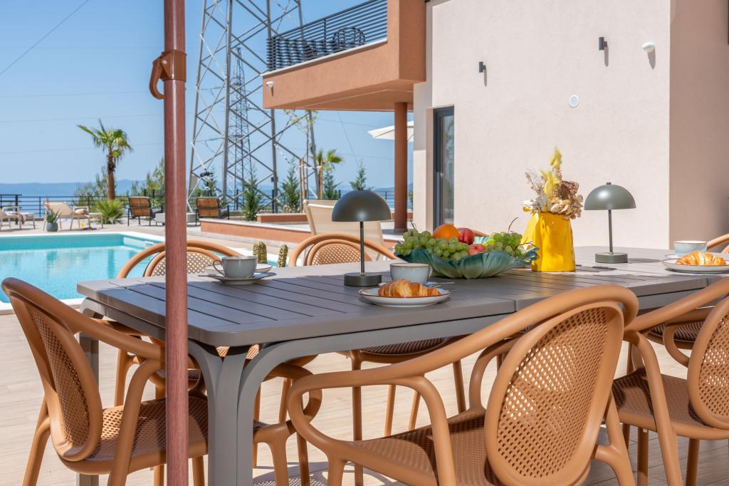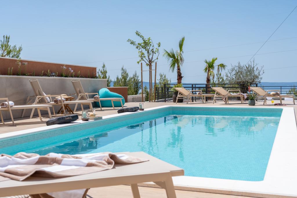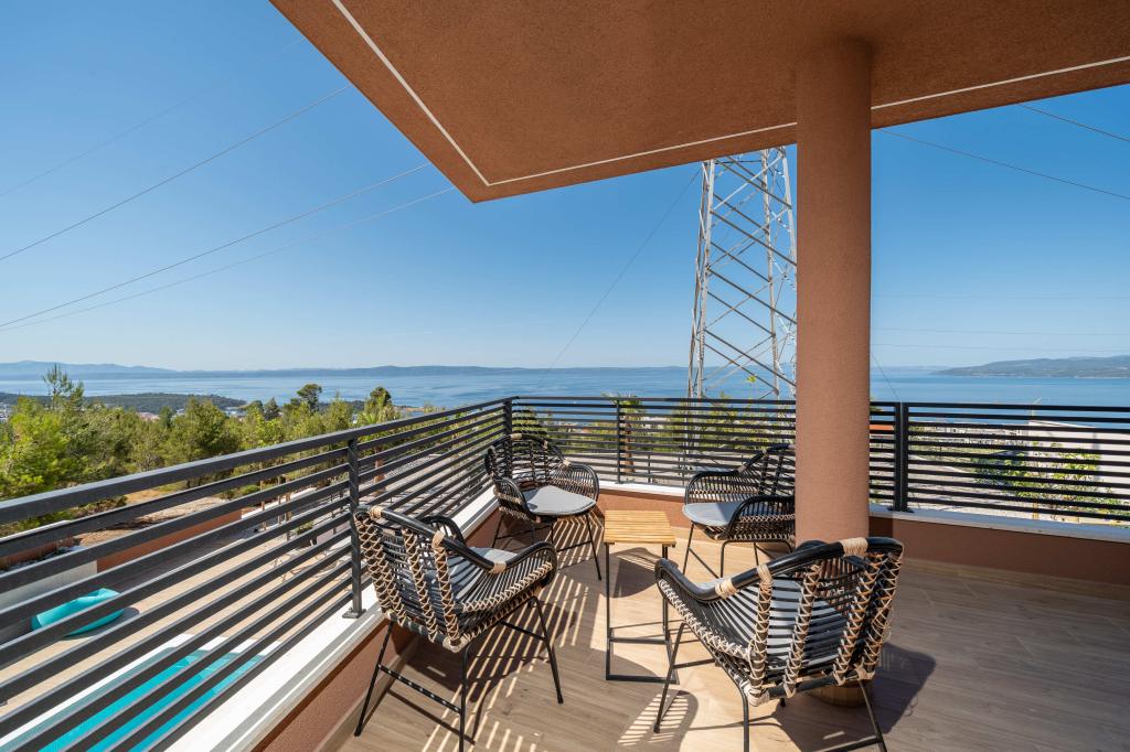 Moderna vila s spektakularnim panoramskim pogledom na azurno more i gorostasno Biokovo – prava luksuzna oaza za obitelji ili grupe do 8 sretnika! Uživajte u privatnom bazenu za osvježavajuće plivanje, roštilju za nezaboravne večeri i prostranom vanjskom lounge području savršenom za opuštanje, romantične trenutke ili vesele obiteljske večere pod zvijezdama. Vaš san u Dalmaciji vas čeka!