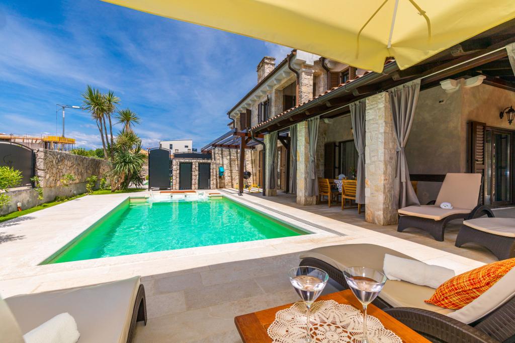 Smještena samo 200 m do mora, nudi idealnu priliku da se opustite na prekrasnoj plaži Uhić ili uživate uz grijani bazen, koji nudi i vodnu masažu. U bližnoj okolici se nalaze uređene pješačke staze, a vožnja biciklom uz obalu uvale pruža poseban užitak. Na kraju ugodnog dana večer možete provesti u šetnju rivom ili uz ukusno jelo i čašu dobrog Krčkog vina u nekom od bljižnih restorana. Pričekat ćemo vas sa pićem dobrodošlice. Pišite nam za ponudu.