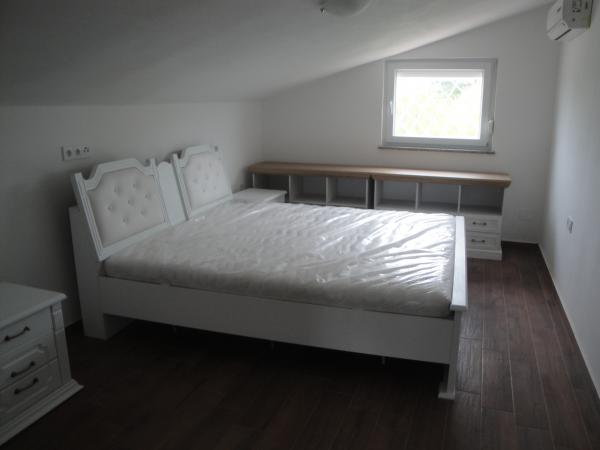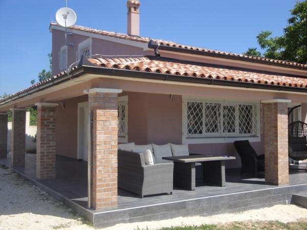 Nova, moderno opremljena vila, cca 100m2, na vrlo atraktivnoj lokaciji koja se nalazi između Pule i Medulina sa manjim pomičnim bazenom promjera oko 4 m. Smještena je pored velikog maslinika na terenu od 7000 m2, u prirodi, miru i tišini, a opet blizu svih sadržaja. Udaljenost od Medulina je oko 1500 m, a od Pule 6000 m. Prvi susjed nalazi se na oko 1000 m udaljenosti. U prizemlju se nalazi veliki dnevni boravak sa trpezarijom i kuhinjom, jednim kupatilom, a na katu dvije spavaće sobe sa drugim kupatilom. Osim pomenutih 6 kreveta u dnevnom boravku se nalazi sofa za dodatna 2 ležaja u slučaju potrebe. Ispred kuće se nalazi veliki trijem, cca 50m2 na kojem možete boraviti cijeli dan, a bit će Vam omogućeno i korištenje roštilja na drva koja se nalaze u blizini. Pored trijema je manji pomični nadkriveni bazen promjera 366 cm nadkriven nadstrešnicom tipa paviljona pa se za vrućih dana i večeri mozete osvježiti sa svojom djecom. U svim se sobama nalazi air conditioner.