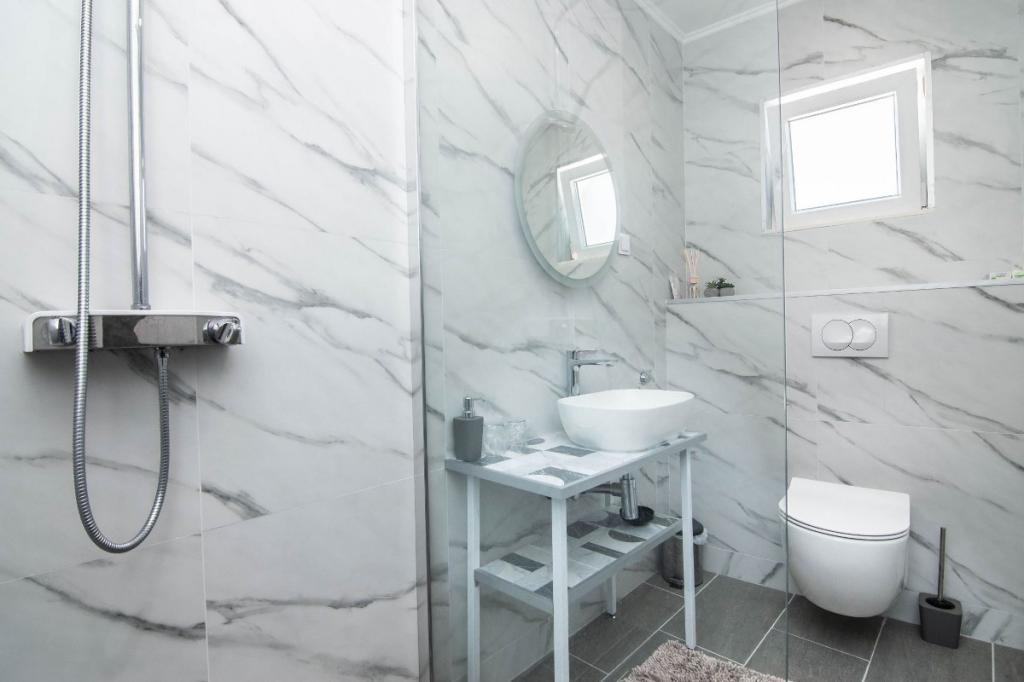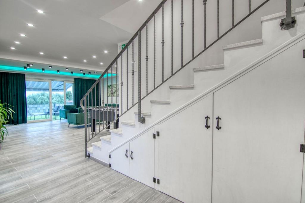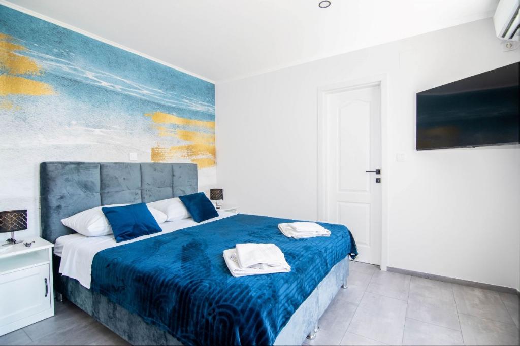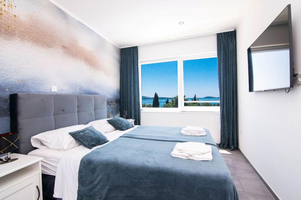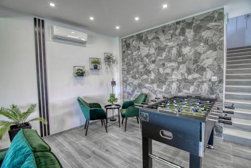 Kompletno i suvremeno opremljena vila sa bazenom na izvrsnoj lokaciji , udaljenost od plaže, centra, kafića i trgovina između 200-400m. Objekt posjeduje bazen dimenzija 6 x 3 metra. unutar ville su 3 sobe svaka sa svojom kupaonicom, veliki dnevni boravak i kuhinja, svi prostori su klimatizirani.