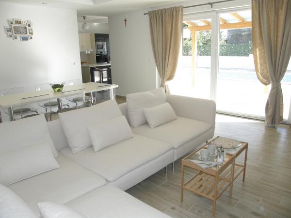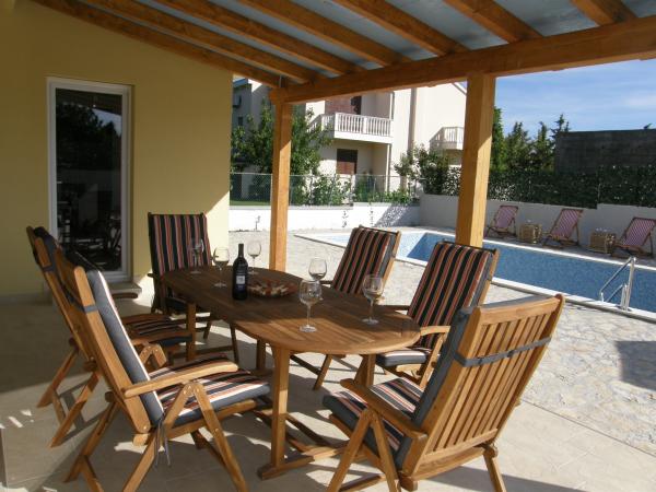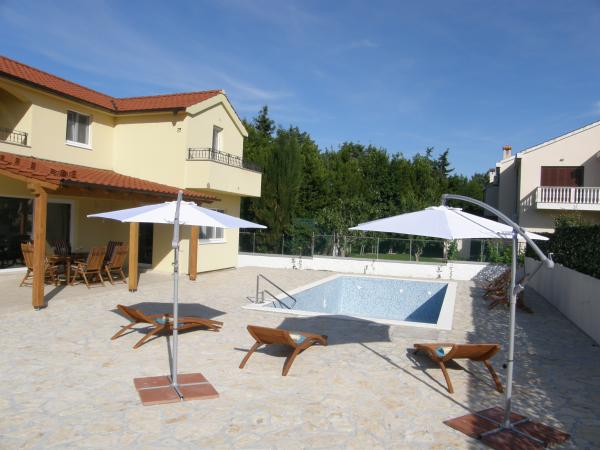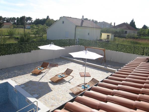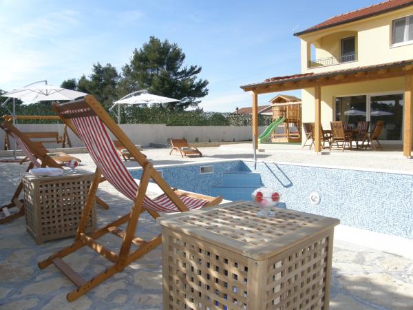 Potpuno nova vila sa bazenom u okolici Zadra. Vila je 3km udaljena od NIna i 3km od turističkog naselja Zaton. Udaljenost do Zadra je 15km. Vila ima 3 spavaće sobe, 3 kupatila, potpuno opremljenu kuhinju; hladnjak, zamrzivač, mikrovalna, kuhalo na struju i plin, pećnica..., dnevni boravak, vanjsku natkrivenu terasu od 20m2 te vanjski bazen od 32m2. Okućnica od 530m2 je uređena u mediteranskom stilu sa vrtnom ljuljačkom, ležaljkama i suncobranima te dječjim igralištem. U vrtu su zasađene masline, limuni, lavanda i ruzmarin. Villa se nalazi u naselju Ninski stanovi u mirnom okruženju obiteljskih kuća. Do najromantičnijeg gradića Nina ima samo oko 3km. Nin je poznat po svojoj bogatoj povijesti, ljekovitom blatu, muzeju soli i dugačkoj pješčanoj plaži. Dobro došli!