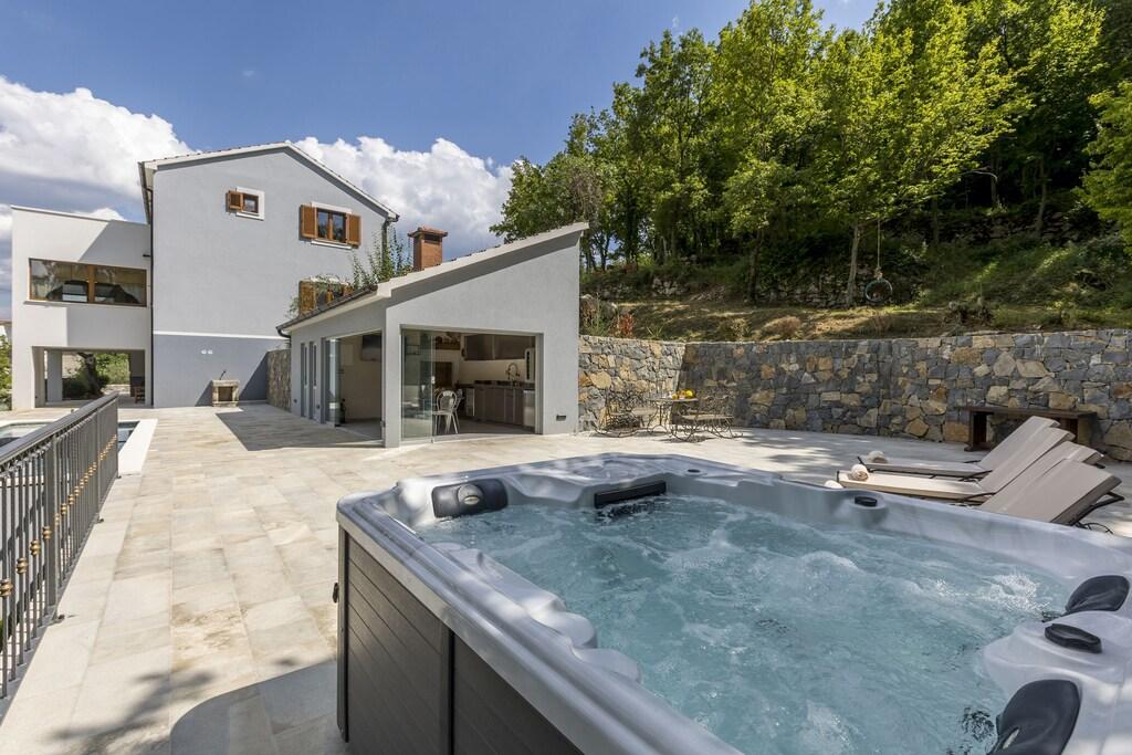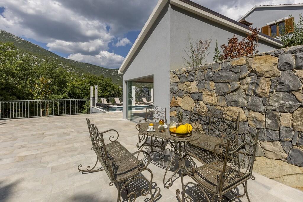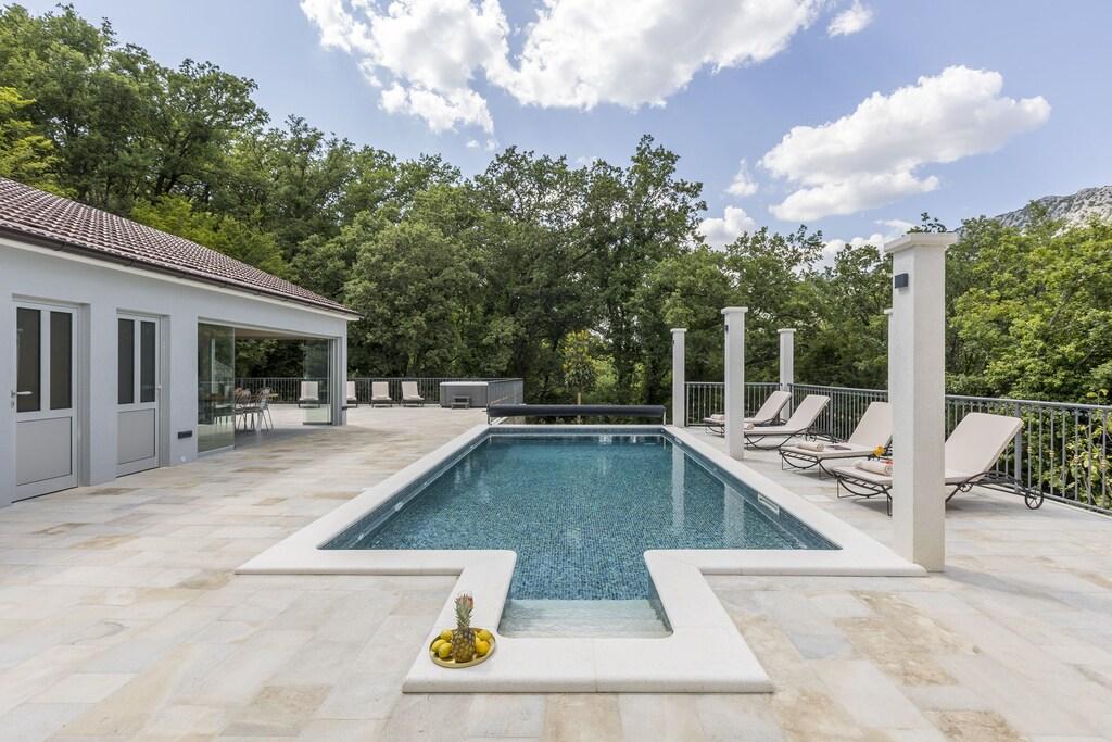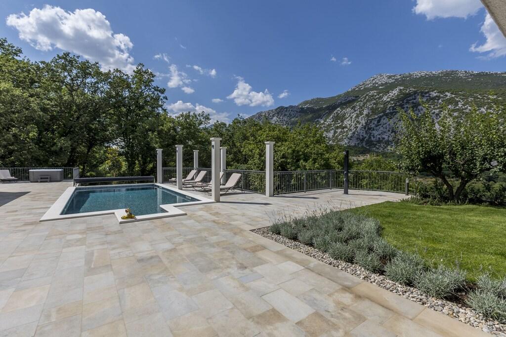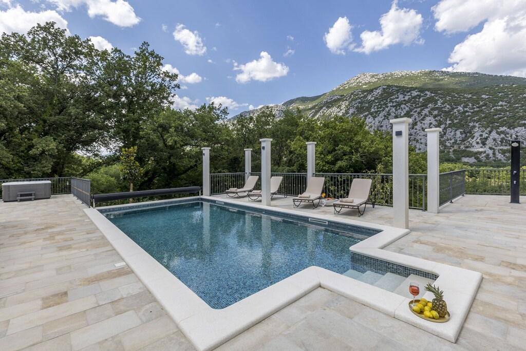 Kompletna i novouređena villa sa bazenom, saunom , ljetnom kuhinjom i kućom sa 4 spavaće sobe. Svaka soba ima svoje vlastito kupatilo, dnevni boravak, blagavaona i kuhinja. Kuća se nalazi u malom mjestu Zvečanje,10 minuta od izlaska s auto puta Blato na Cetini. Omiš je udaljen, 15 min autom, Split 35 minuta, Makarska 25 min.