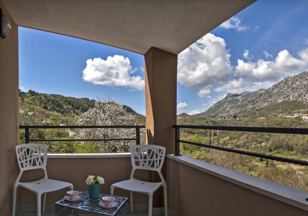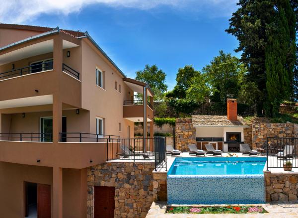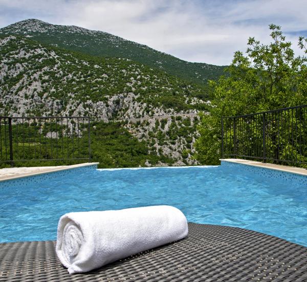 Suvremeno opremljena vila sa preljevnim bazenom, unutrašnjim hidromasažnim bazenom i predivnim pogledom na potok i planinu Mosor. Smještena je u selu Smolonje u zaleđu grada Omiša i udaljena je 15-20 minuta od centra grada. Villa se sastoji od pet spavaćih soba i pet kupaonica te pruža potpuni komfor za 10 osoba i 2 djece. U prizemlju se nalazi garaža za jedno vozilo, te prostorija sa stolnim tenisom i wc. Ispred kuće se nalazi parking za dva vozila. Na prvom katu dominira dnevni prostor sa konfornom kuhinjom i blagovaonicom za 12 osoba, te dnevni boravak sa LCD televizorom. Prostrana terasa sa garniturom za sjedenje za 4 osobe. Dvije spavaće sobe te dvije kupaonice. Na drugom katu nalaze se tri spavaće sobe i tri kupaonice. Soba za relaksaciju sa Whirpoolom za 4 osobe, podnim grijanjem, tušem te prostranim balkonom. Sve sobe su u potpunosti klimatizirane. Na vanjskom dijelu je veliki prostor sa roštiljem, stolom i stolicama, 6 ležaljki, preljevni bazen od 27m2.
