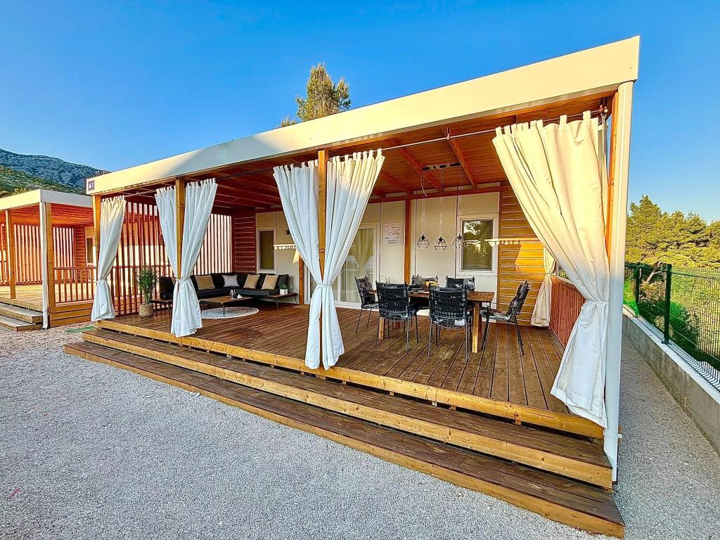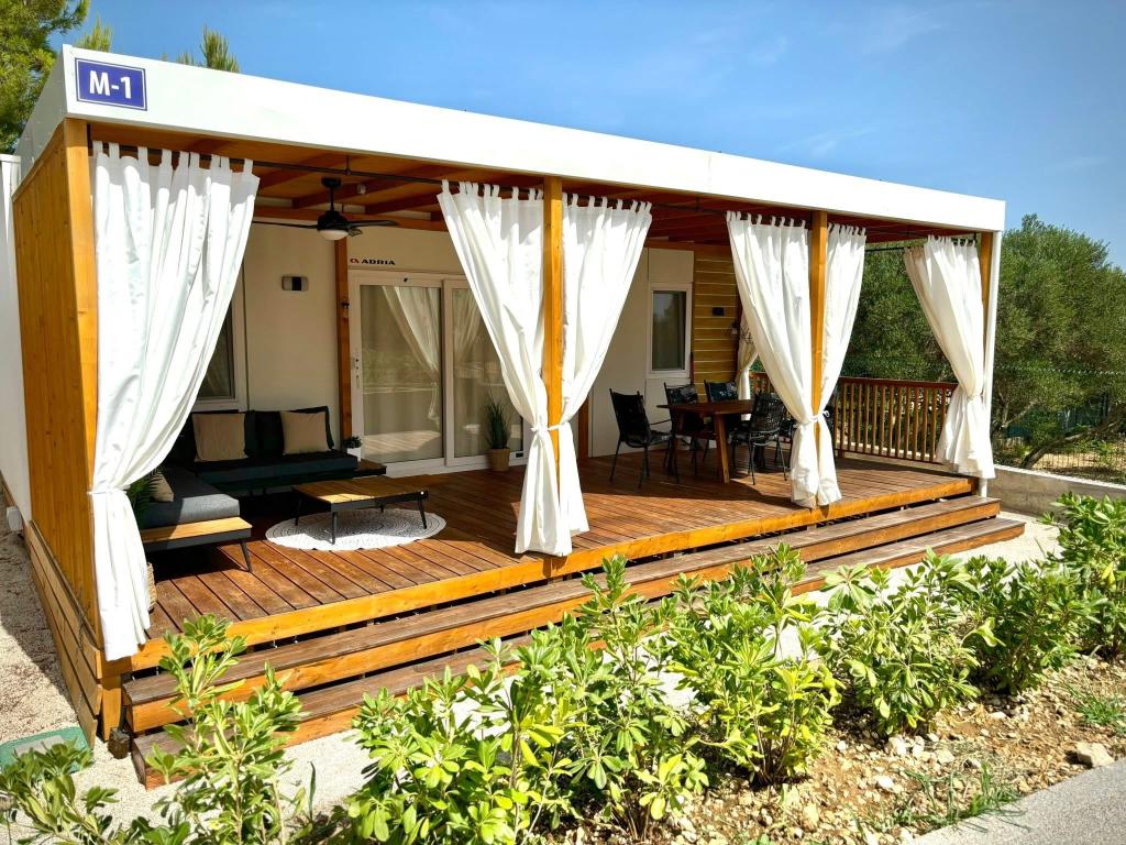 Otkrijte novu modernu mobilnu kućicu u mediteranskom stilu, smještenu u malom dalmatinskom mjestu Orebić (Kamp “Dalmata”), okruženu netaknutom prirodom i zlatnim plažama, s raznovrsnim restoranima i vinarijama s vrhunskom kuhinjom i poznatim vinima. Opustite se na terasi od 30 m2, nekoliko koraka od bazena, opremljenoj ležaljkama, vanjskim prostorom za odmor i svime što vam je potrebno za zadovoljavanje vaših hedonističkih želja.