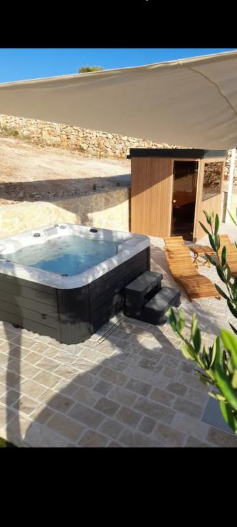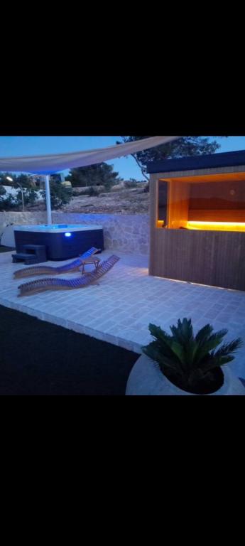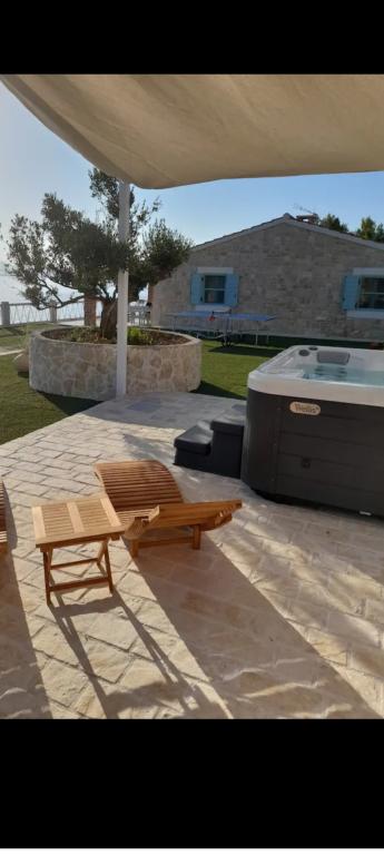 Rustikalna Villa Gagliana smještena je na otoku Žižanj jugozapadno od otoka Pašmana. Nema direktnu povezanu vezu s kopnom ali domaćini su svakako na raspolaganju za prijevoz i dostavu namirnica. Villa nudi potpuni mir i opuštanje uz samu morsku obalu te 40 m2 bazen koji je punjen slatkom vodom. Unutrašnjost ville je klimatizirana i opremljena s 2 spavače sobe od koje je jedna bračna soba a druga dječja soba s dva kreveta na kat i jedan krevet za jednu osobu, potpuno opremljena kuhinja s dnevnim boravkom i toaletom. U sklopu ville nalazi se još jedna gostinjska soba s ventilatorom i privatnim ulazom te dvostrukom kupaonicom( 2Xlavandina, 2Xwc školjke, 2Xtuš kupaonice). U potpuno ograđenom dvorištu na raspolaganju su vam natkriveni komin s roštiljem i prostom za sjedenje. Opustite se i uživajte uz jacuzzi i vanjsku saunu. Od sportskog sadržaja villa raspolaže s kajakom i daskom za veslanje što gostima pruža uživanje i obilazak otoka i obale.