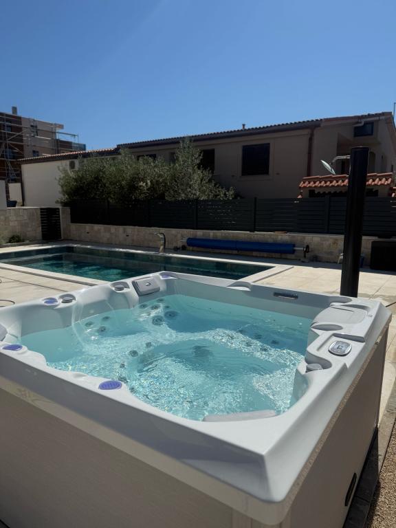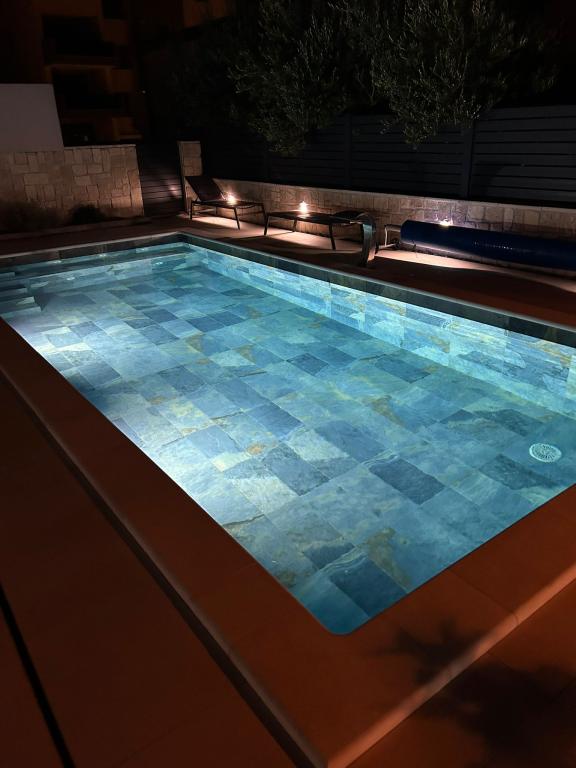 Luksuzna vila Pam nalazi se u Mandrama, na samo 400 metara od prve šljunčane plaže. Raspolaže klimatiziranim smještajem u svakoj sobi te s privatnim grijanim bazenom (8×3,5) kapaciteta do max. 8 osoba. Ova vila na 230 m2 je novoizgrađena i nudi izlaz na balkon, ima besplatan privatni parking, besplatni WiFi i dvorište od 300 m2. Prostrana vila ima 4 spavaće sobe, 4 kupaonice, TV ravnog ekrana i blagovaonicu, potpuno opremljenu kuhinju i ljetnu terasu s pogledom na bazen. U ponudi je i vanjski grill za nezaboravne objede i druženja na svježem zraku. Ova luksuzna vila idealna je za opuštajući odmor s obitelji i prijateljima.