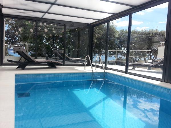 Ugodna i kompletno suvremeno opremljena vila sa bazenom u Mandrama, otok Pag, 70km od Zadra. Od centra mjesta udaljena je 120m. Ispred vile je prekrasna dugačka plaža od sitnog šljunka, uzduž koje se proteže šetnjica. Vila je idealna za relaksirajući odmor sa obitelji i prijateljima. Sa svih terasa vile pruža se neodoljiv pogled na kristalno more i otoke. U dvorištu se nalazi zatvoreni, grijani bazen sa protustrujnim plivanjem i masažom, vanjski tuš i sunčalište sa pogledom na more, te prostor za odmor u hladu borova. Vila ima tri kata (prizemlje, kat i potkrovlje), može primiti 12 osoba. Na svakom katu je jedna stambena jedinica sa vlastitim ulazom, SAT/TV, hlađenje. Svaka jedinica ima kuhinju, blagovaonicu, dnevni boravak i terasu sa pogledom na more. Jedinica u prizemlju ima dvije spavaće sobe (4 osobe), kupaonicu i WC. Na katu su dvije spavaće sobe, kupaonica, WC i još jedna spavaća soba sa vlastitom kupaonicom (6 osoba). U potkrovlju je jedna spavaća soba (2 osobe) i kupaonic