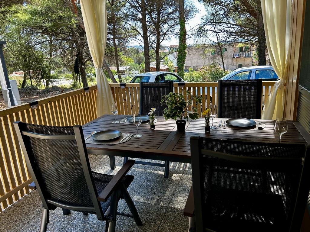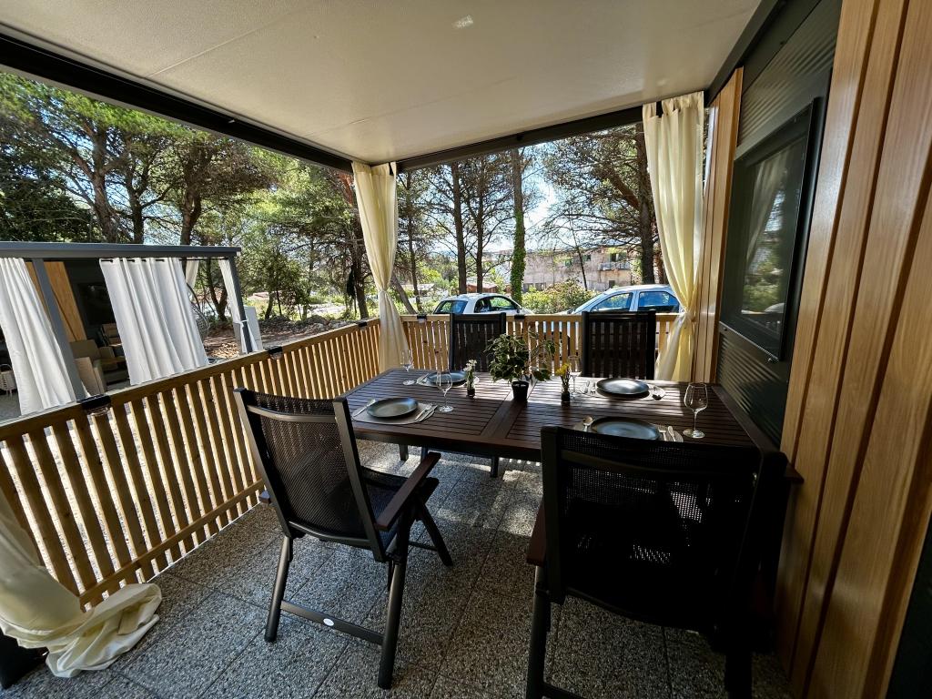 Iznajmljujemo potpuno opremljenu mobilnu kućicu savršenu za odmor! Karakteristike: • Površina: 25 m² unutarnjeg prostora + 25 m² terase • Spavaće sobe: 2 sa bračnim krevetima, sofa na razvlačenje • Kuhinja: Potpuno opremljena Dodatno: • Terasa s plinskim roštiljem i pizza pećnicom, stol za 6-10 osoba • Plaža: 4 minute hoda do šljunčane i pješčane plaže • Centar: 7 minuta do centra Parkiranje: 2 parkirna mjesta