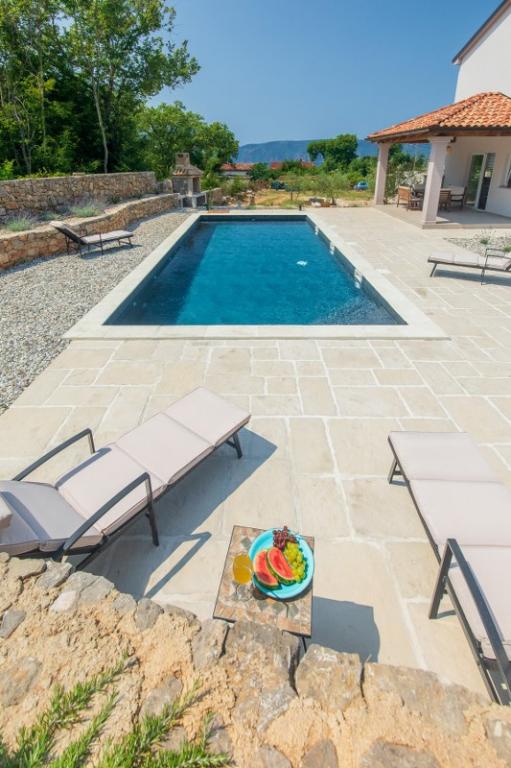 Villa Albina nalazi se u mirnom ruralnom području u mjestu Skrpčići na otoku Krku u samoj blizini grada Krka. Jedinstvena, renovirana na način da zadrži svoju autentičnost, s mnogo rustikalnih detalja. Kuća nudi vrlo romantično, toplo i ugodnu atmosferu. Ovaj smještaj idealan je ako želite provesti odmor u prirodnom i opuštajučem okruženju. Uživajte u prekrasnom bazenu 10x4 te prostranoj unutrašnjosti smještaja, na katu dvije prostrane spavaće sobe sa vlastitim kupatilom i balkonom, velikim dnevnim boravkom i kompletnom kuhinjom sa svim aparatima. U kući su sve prostorije klimatizirane i besplatan internet, dvije terase i prostrana okučnica sa mediteranskim biljem i maslinama skrivena od pogleda.
