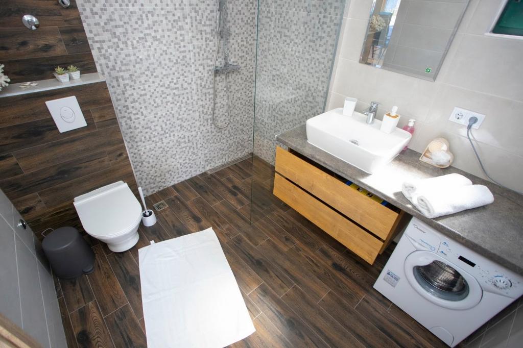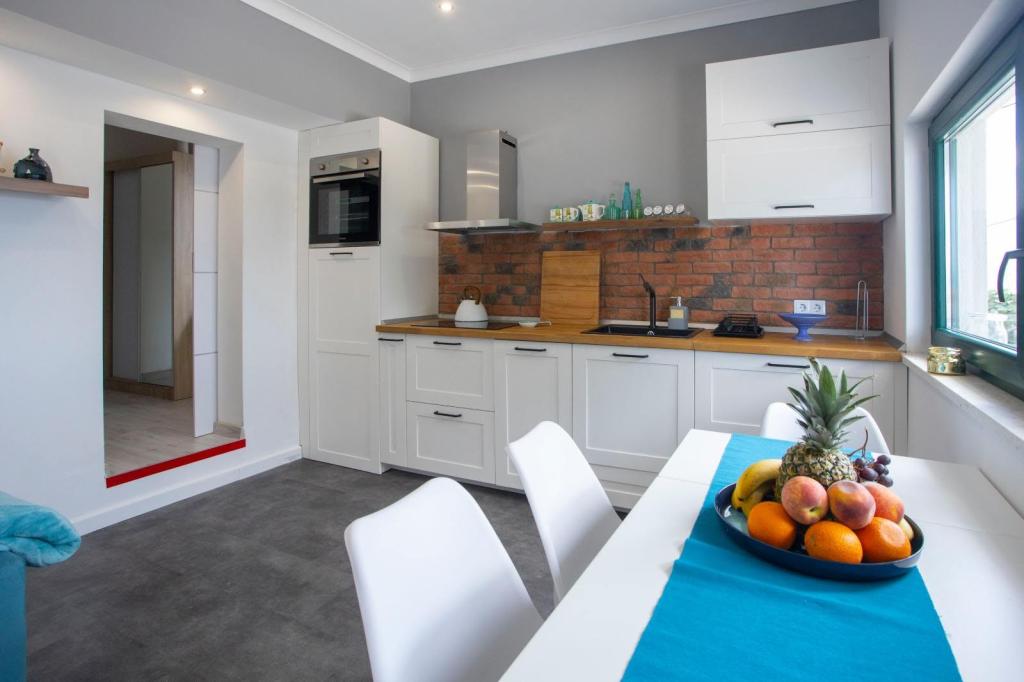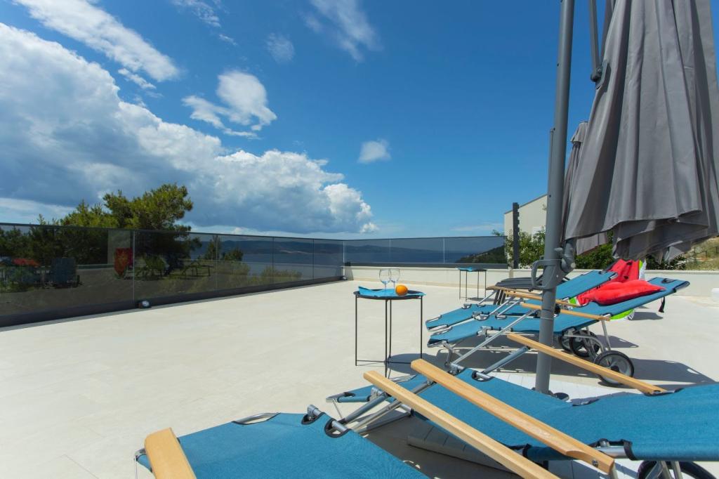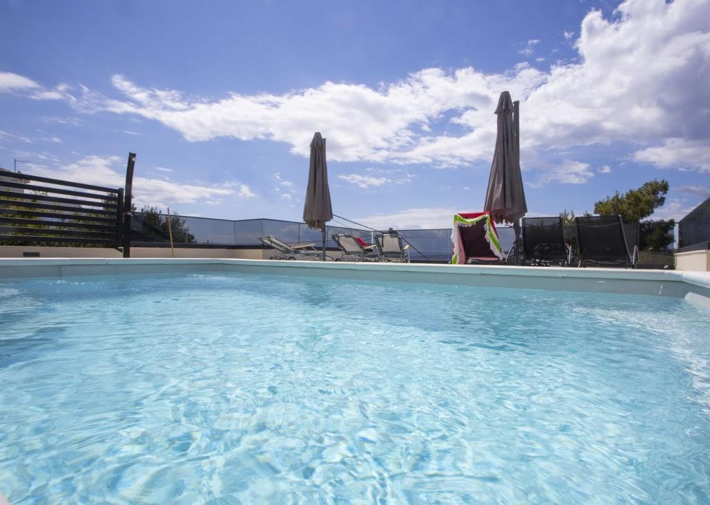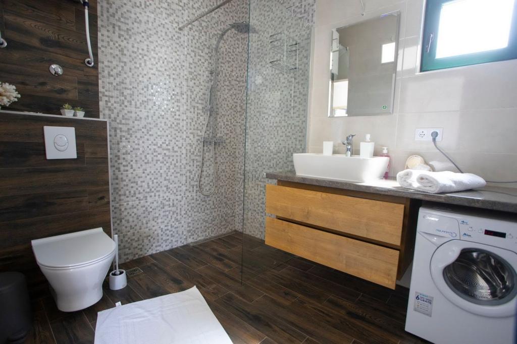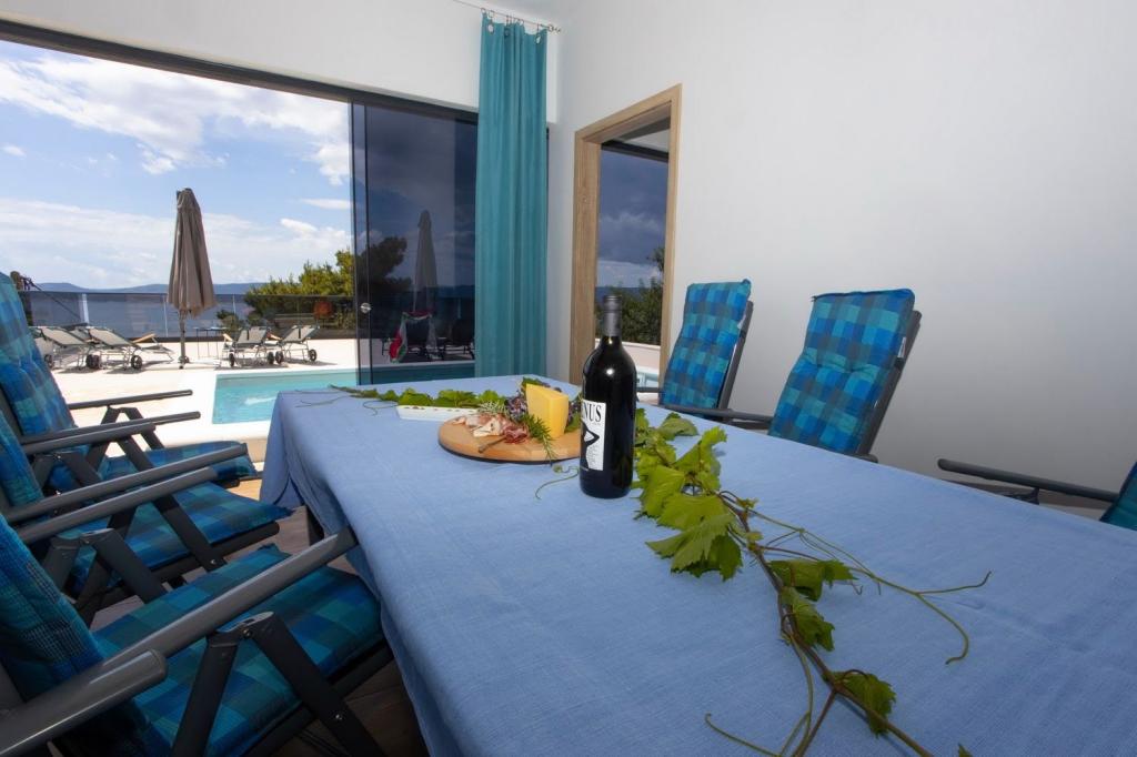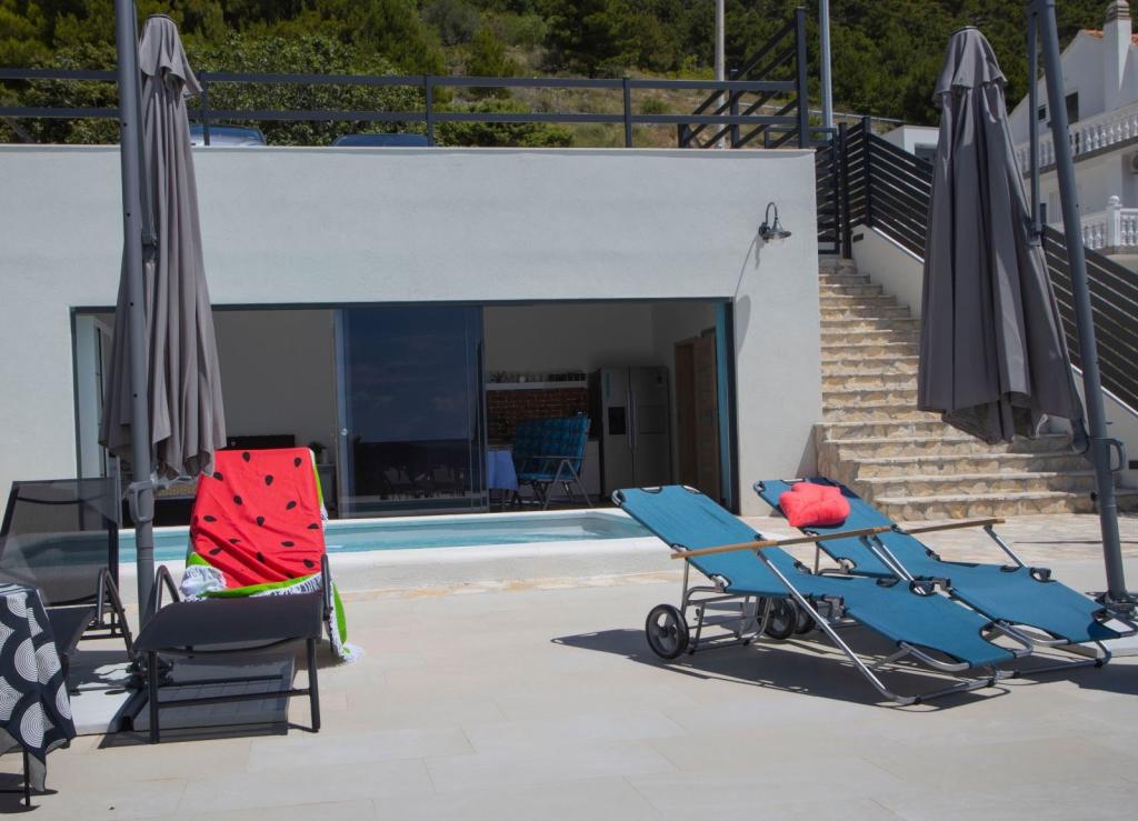 Gostima su na 3 spavaće sobe s braćnim krevetima ,svaka są kupaonom.Dodatno u zajedničkom prostoru odnosno dnevnom boravku ,nalazi se kauč na razvlačanje na kojim mogu spavati 2 osobe.Kuhnja ima sve potrebne uređaje.Vani se nalazi terasa s basenom i svima sadržajama ležajke ,pergola,tuš, roštilj stol są stolicama.Kuća ima 3 parkirna mjesta.Ukupno je previđena są 8 osoba.Najam je sveobuhvatan odnosto ne postoji mogućnost najma npr.samo 1 sobu.U svakoji prostorje je klimatizacja.