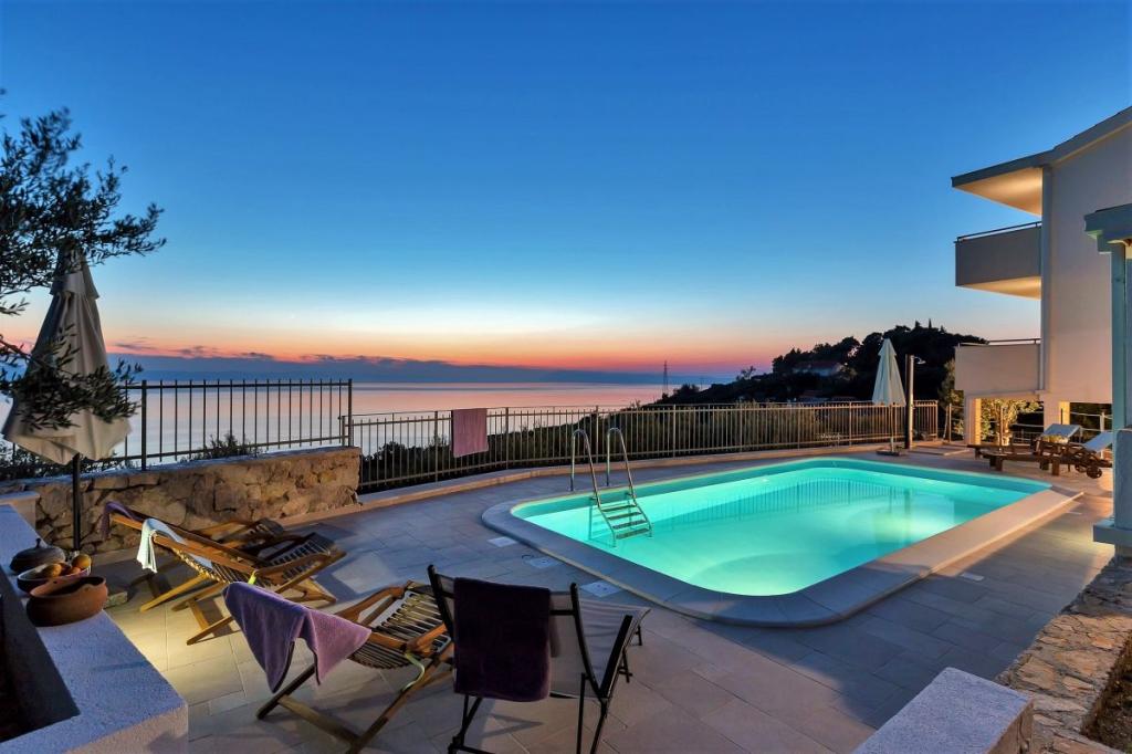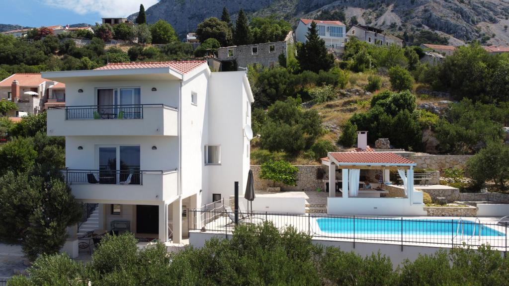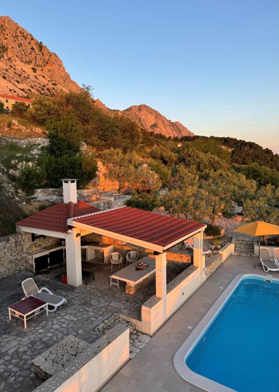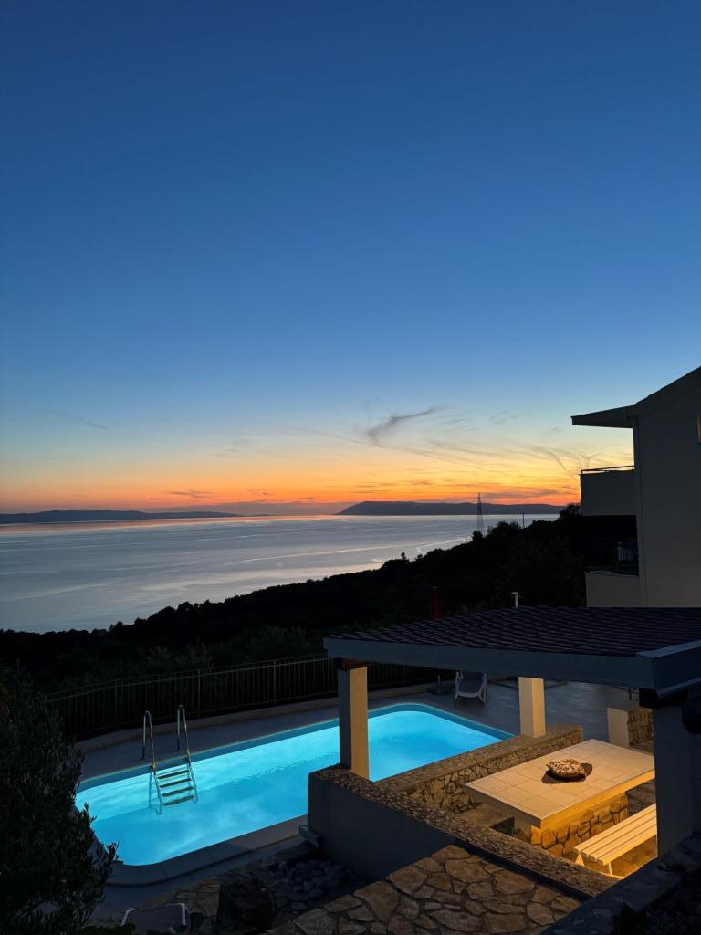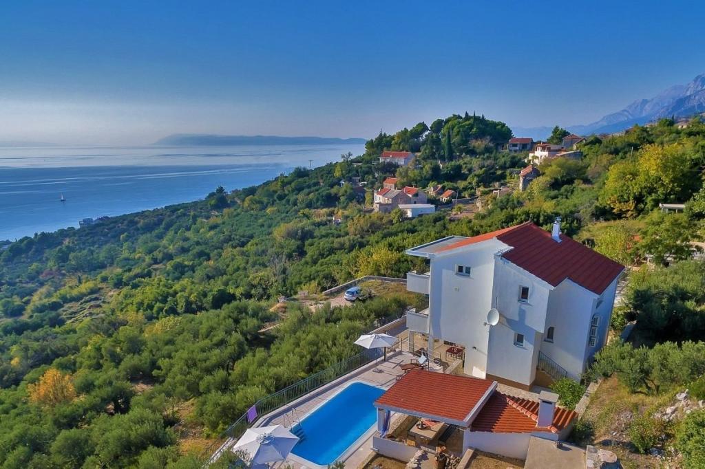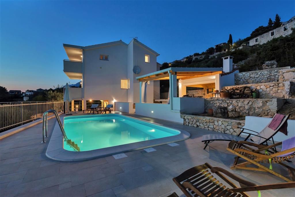 Suvremeno opremljena Villa sa bazenom , u mirnom okruženju sa prekrasnim pogledom na otoke Hvar i Brač.Smještena je 2 km udaljenosti od mora , plaže i centra mjesta.