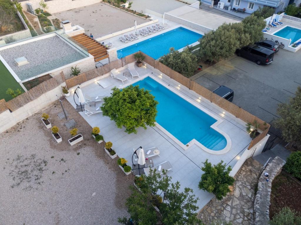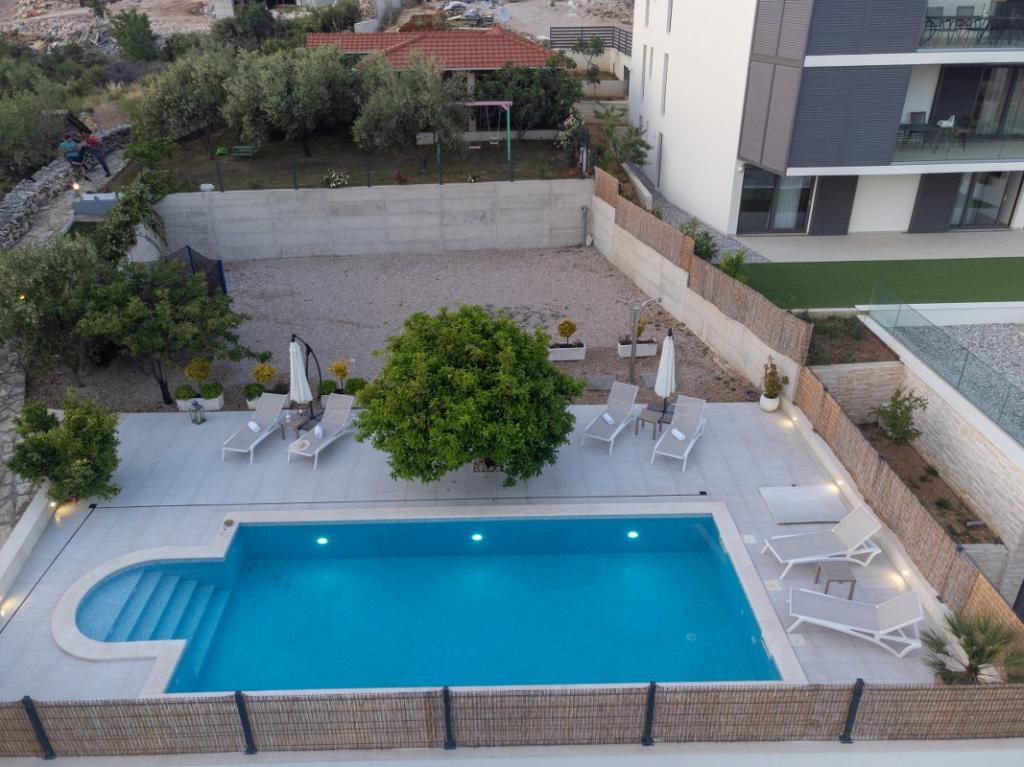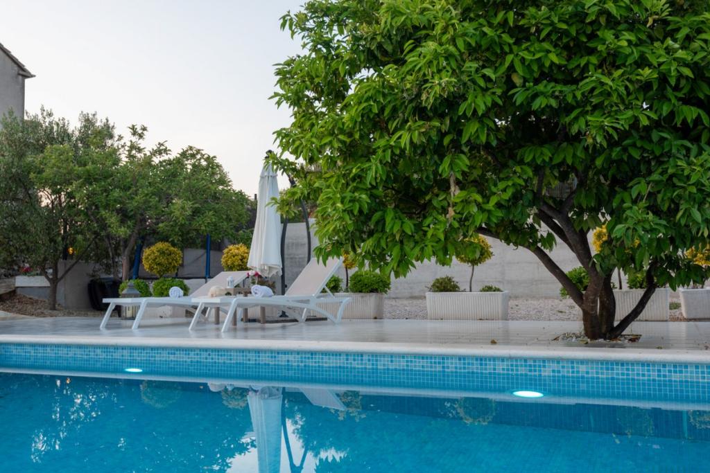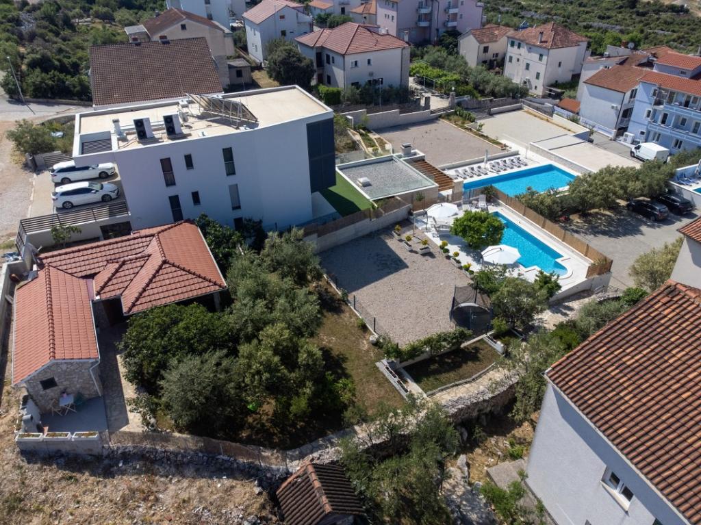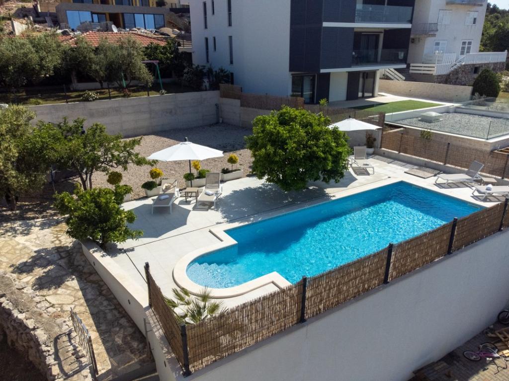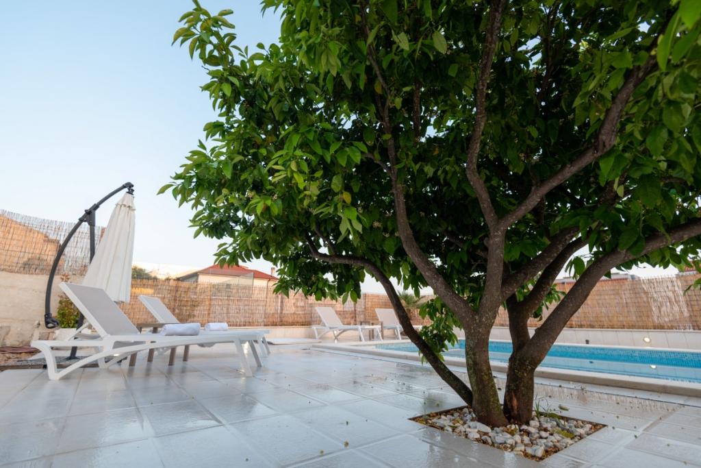 Sun gardens je šarmantna kuća za iznajmljivanje, smještena u predgrađu Šibenika, Podsolarsko, samo 1km od popularnog parka Amadria. Skrivena među stablima maslina, ova kuća ima 2 spavaće sobe, kupaonicu, veliki vrt i igralište za djecu, a velika blagovaonica i kuhinja, koje se nalaze u staklenom dijelu, savršeni su za večernja okupljanja. Najveći plus je veliki privatni bazen i prostor za sunčanje za opuštajuće trenutke.