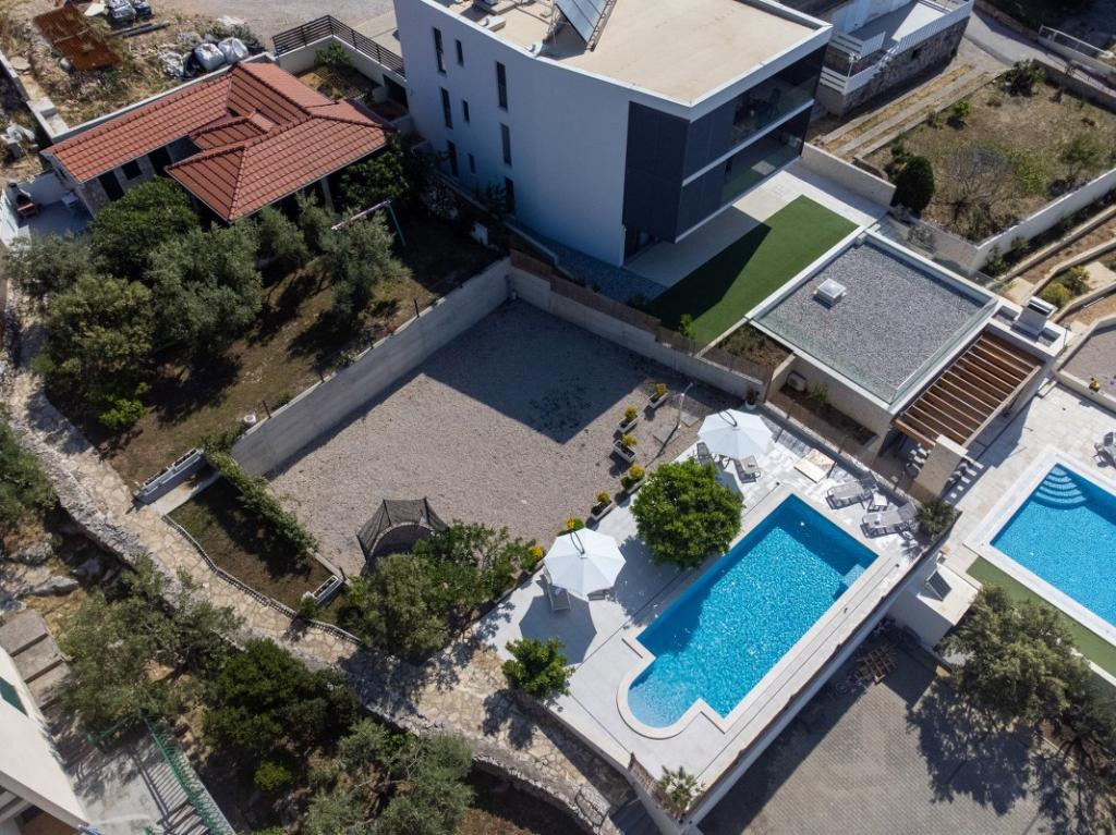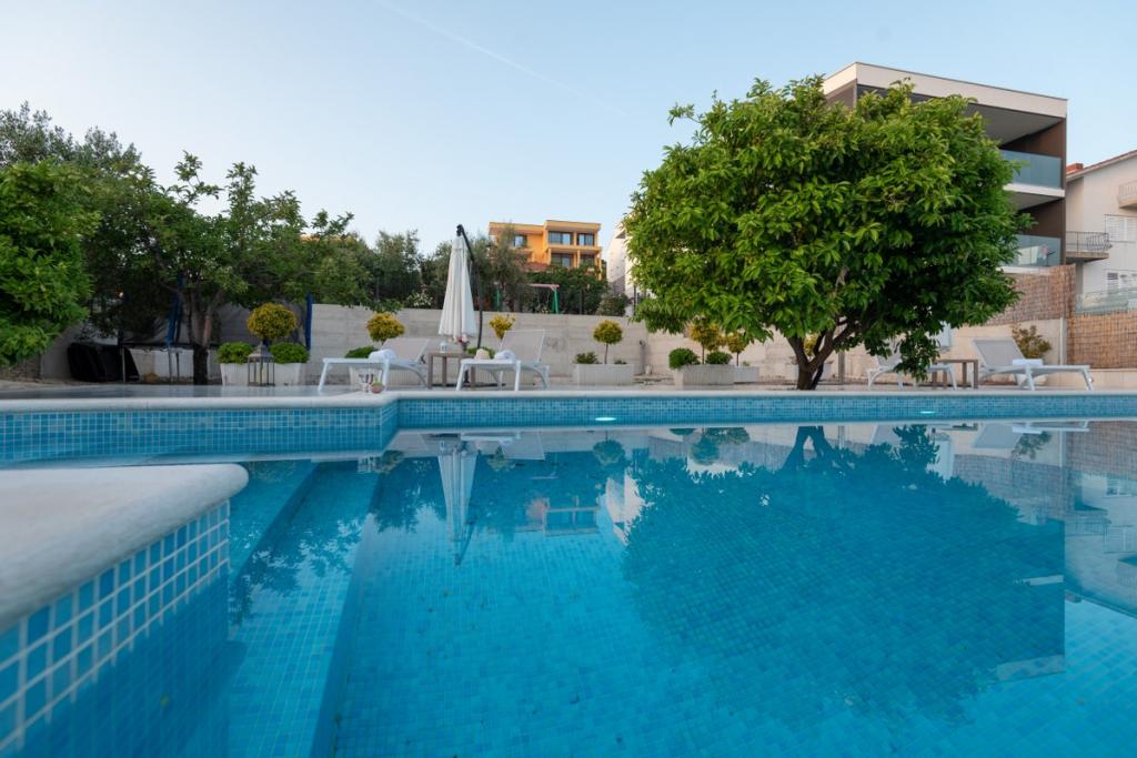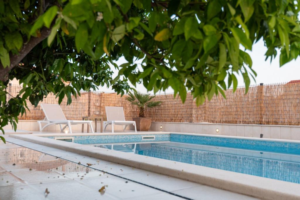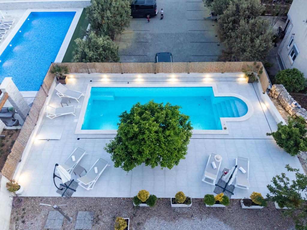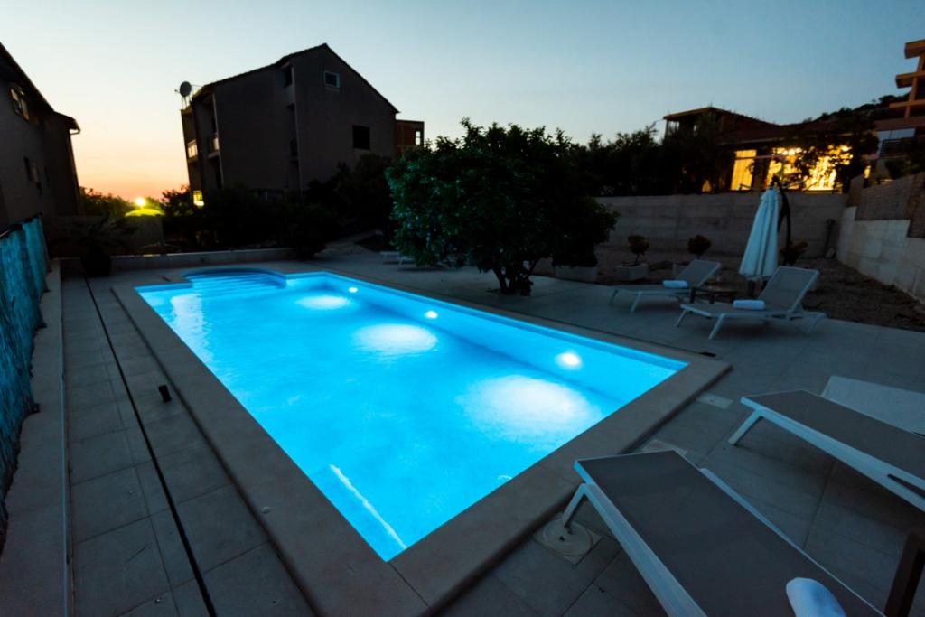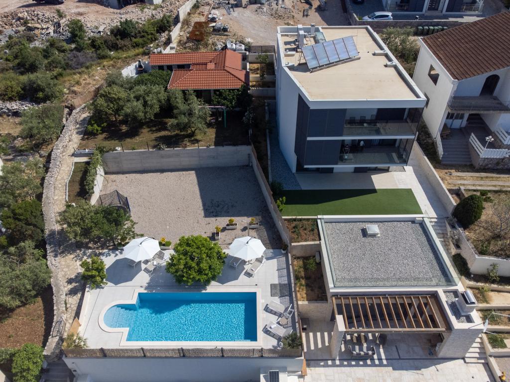 Sun gardens je šarmantna kuća za iznajmljivanje, smještena u predgrađu Šibenika, Podsolarsko, samo 1km od popularnog parka Amadria. Skrivena među stablima maslina, ova kuća ima 2 spavaće sobe, kupaonicu, veliki vrt i igralište za djecu, a velika blagovaonica i kuhinja, koje se nalaze u staklenom dijelu, savršeni su za večernja okupljanja. Najveći plus je veliki privatni bazen i prostor za sunčanje za opuštajuće trenutke.