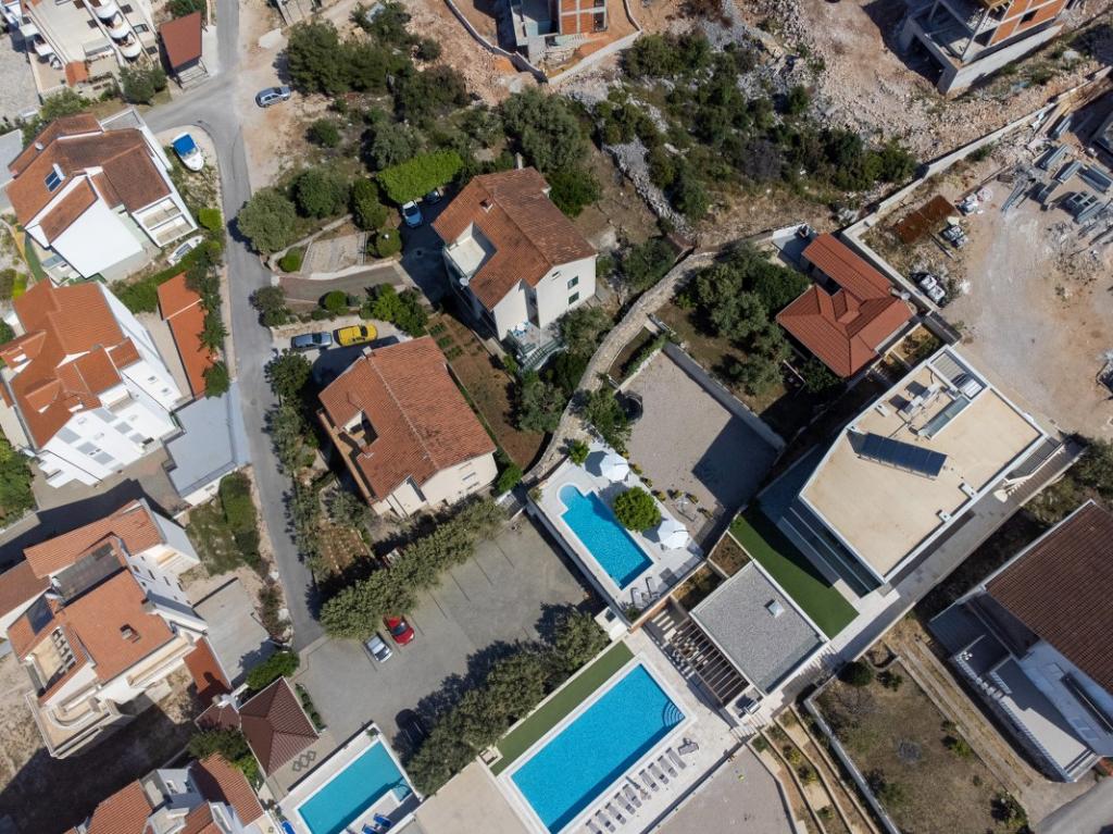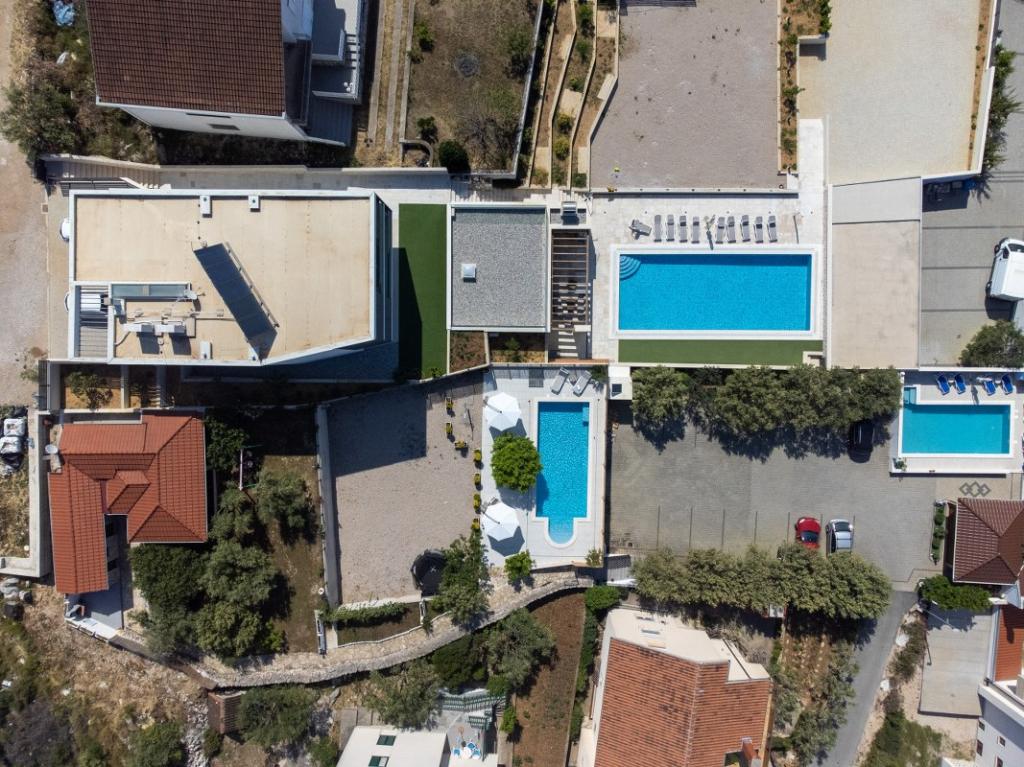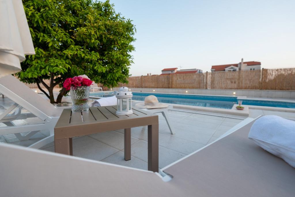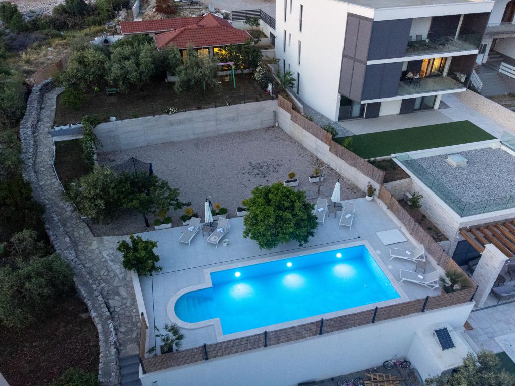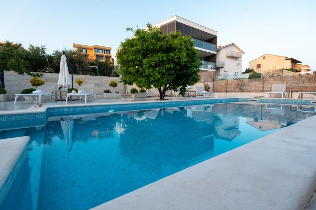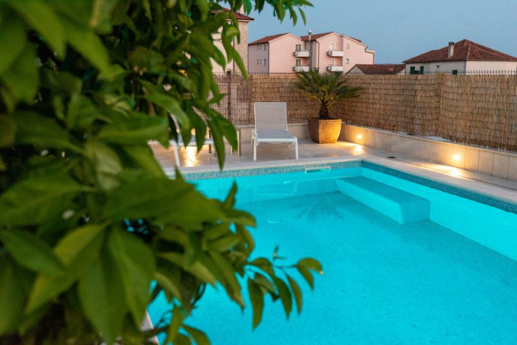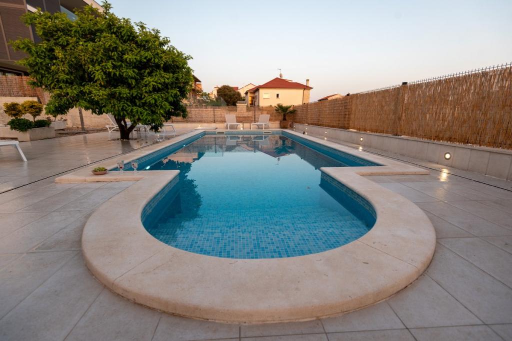 Sun gardens je šarmantna kuća za iznajmljivanje, smještena u predgrađu Šibenika, Podsolarsko, samo 1km od popularnog parka Amadria. Skrivena među stablima maslina, ova kuća ima 2 spavaće sobe, kupaonicu, veliki vrt i igralište za djecu, a velika blagovaonica i kuhinja, koje se nalaze u staklenom dijelu, savršeni su za večernja okupljanja. Najveći plus je veliki privatni bazen i prostor za sunčanje za opuštajuće trenutke.