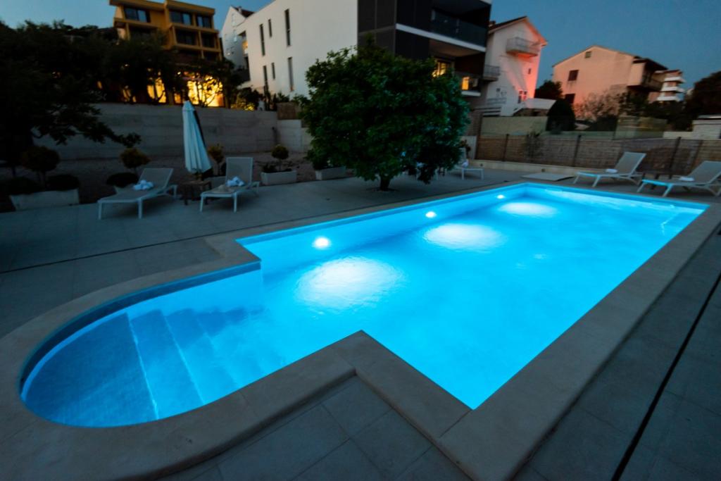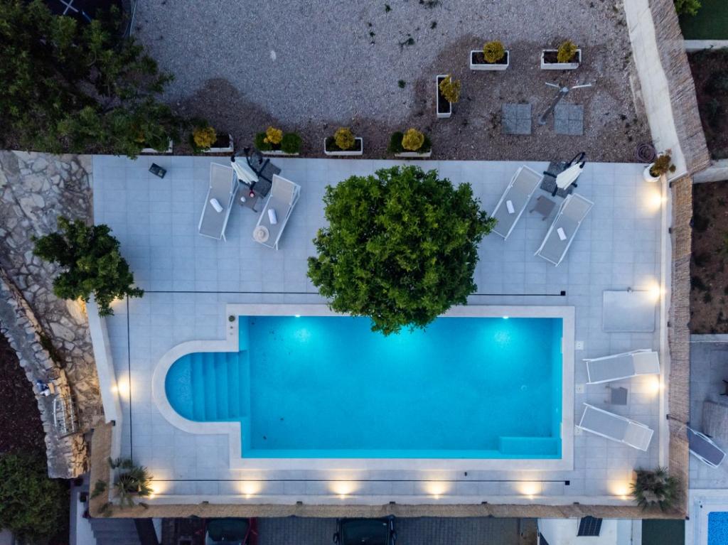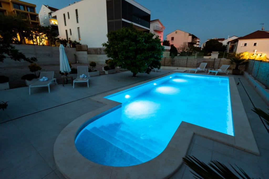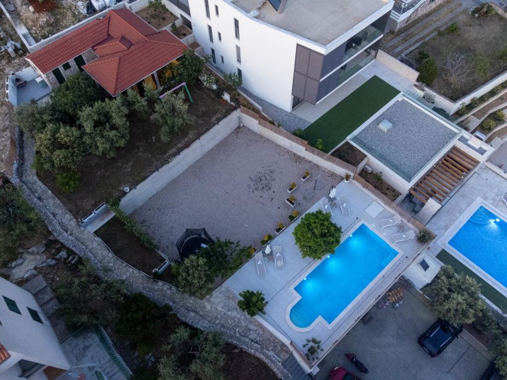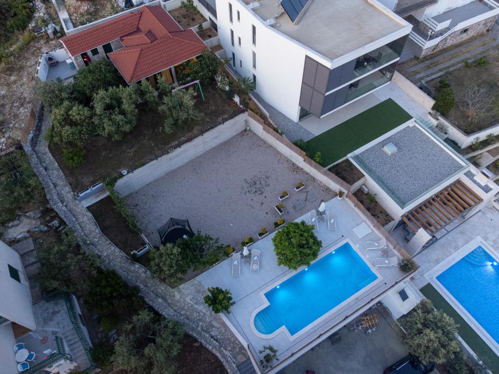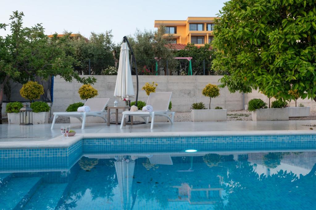 Sun gardens je šarmantna kuća za iznajmljivanje, smještena u predgrađu Šibenika, Podsolarsko, samo 1km od popularnog parka Amadria. Skrivena među stablima maslina, ova kuća ima 2 spavaće sobe, kupaonicu, veliki vrt i igralište za djecu, a velika blagovaonica i kuhinja, koje se nalaze u staklenom dijelu, savršeni su za večernja okupljanja. Najveći plus je veliki privatni bazen i prostor za sunčanje za opuštajuće trenutke.
