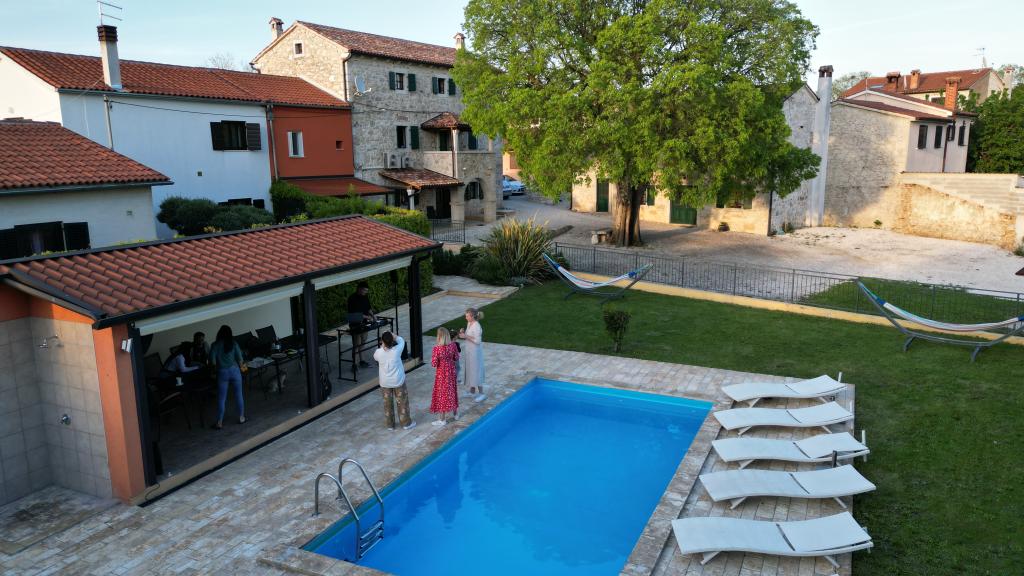Antonci 18 je klasično istarsko imanje koje se sastoji od 3 kamene kuće. Imanje ima prekrasno dvorište sa starim velikim stablom u sredini. Ovdje vas očekuje romantična atmosfera. Mirna i idilična oaza odsječena od vanjskog svijeta. Ovdje imate sve da se osjećate ugodno, uključujući vlastiti bazen, vanjsku kuhinju i obilje prostora za opuštanje, sunčanje i igru za djecu te njihove četveronožne prijatelje. Uživajte u svom boravku na ovom jedinstvenom malom kutku svijeta i vratite se ponovno. Bazen veličine 28 m2 - samo za vas Usred dvorišta - stoljetni hrast. Uživat ćete u njegovoj sjeni Ograđena okućnica veličine 1500 m2 8 parkirnih mjesta za Vaše automobile Individualna klima u svakoj sobi 8 spavaćih soba 6 kupaonica 3 dnevne sobe 8 kreveta 2 kauča na razvlačenje 16 sjedećih mjesta moguć smještaj do 30 gostiju oko postavljenih stolova tijekom zabave u dvorištu vile oprema za pojačavanje zvuka i projektor pomoći ćemo vam s cateringom, fitness instruktorima, maserima i organiziranjem za