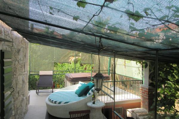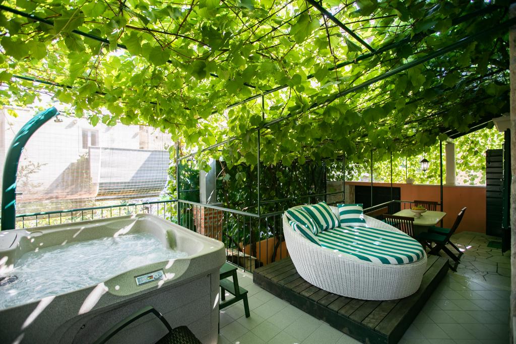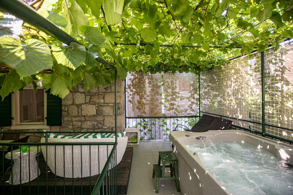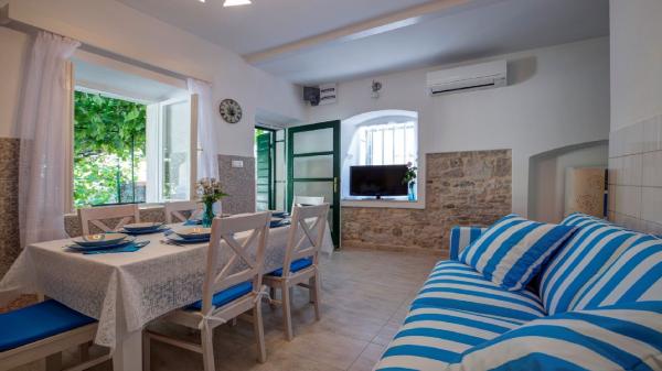 Tradicionalna kamena vila Nono Ivo 4 kompletno renovirana. NOVO! UGRAĐEN JE VANJSKI HOT TUB za 4 osobe. Iznajmljuje se kao cijela vila, U vili ste sami, nema drugih gostiju i nema vlasnika. Novo namještena u mediteranskom stilu sa svim što je potrebno za moderan život. Udaljena od centra, plaže i svih potrebnih sadržaja 30 m. Vila ima mogućnost smještaja u kući 6 odraslih i 2 dijete. U kući se nalaze 3 spavaće sobe, od kojih je jedna sa 2 odvojena ležaja, druga sa duplim king size krevetom i ležajem za dijete do 12 godina, a treća sa duplim krevetom i ležajem za dijete do 18 godina, 2 kupatila i dnevnim boravkom sa kuhinjom i blagovaonom, sve klimatizirano. Vanjski dio se sastoji od terase sa kamenim stolom za 8 osoba, druge terase sa ležaljkama i solarnim tušem, dvora sa kamenim roštiljem i ljetnog aneksa koji sadrži 1 sobu, opremljenu kuhinju i kupatilo. Okružena vrtovima i intimom. Parkiralište besplatno i udaljeno 40 m. U blizini kuće su 4 plaže.