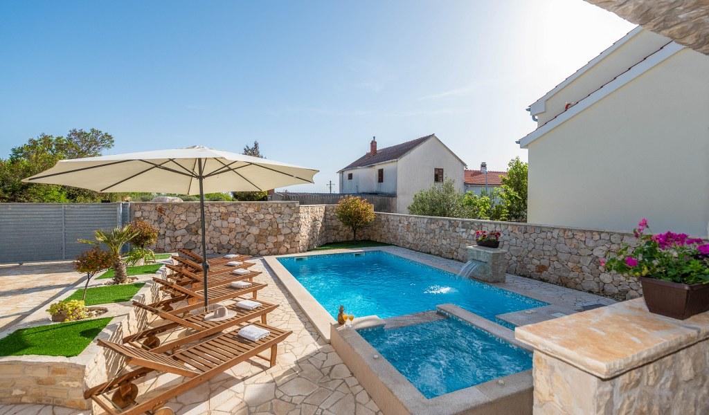 U malenom turističkom mjestu Privlaka tek 5 minuta udaljenom od stoljetno starog povijesnog gradića Nina, u mirnom okruženju nalaze se dvije kompletno opremljene, novo uređene vile. Građene su sa namjerom da našim gostima omoguće odmor od svakodnevnice a u ograđenom dvorištu i privatnom bazenu mir i privatnost su zagarantirane. Nalaze se u nenaseljenom dijelu Privlake a ljubiteljima povijesnih znamenitosti uvjereni smo da će biti posebno zanimljiva crkva Sv. Vida iz 13. og stoljeća koja se nalazi u neposrednoj blizini i po kojoj su ove vile i dobile naziv. Kuće pojedinačno posjeduju bazene površine 25m2, svaka ima po 3 spavaće sobe, kuhinju sa blagavaonicom, ostavu, dvije kupaonice, balkon te terasu. Cjenik je postavljen kao last minute ponuda s obzirom da su radovi na ovim vilama završeni u lipnju ove godine. Sve naše goste prilikom dolaska dočekati će domaćini sa proizvodima iz eko uzgoja te pićem dobrodošlice. Posjetite nas i neka Ville st. Vid1/2 postanu vaš odmor iz snova.