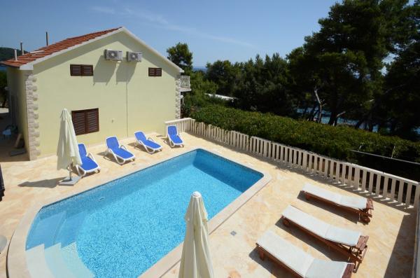 Villa Daria je smjestena na otoku Korculi. Villa ima 5 spavaćih soba, 4 kupaonice i može smjestiti 11 osoba. Novi zabavni sadržaji za malu djecu ispred kuće. Cijela kuća je aklimatizirana i ima 230 m2 s terasama i pogledom na more. Uz bazen je roštilj sa kuhinjom, stolni tenis. U vili se nalaze apsolutni mir. Za one koji žele imati potpuno opuštanje, uživanje dugo sunčanih dana i bistro kristalno more otoka Korčule, naš smještaj je najbolje rješenje za oporavak energiju i vitalnost tijekom Vašeg odmora u Hrvatskoj. Cijela vila je opremljena s klima uredjajima i nalazi se manje od 50 metara do mora.