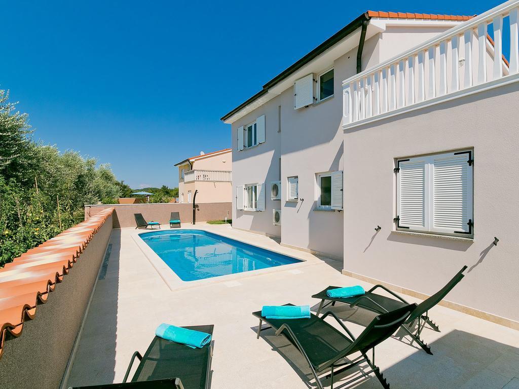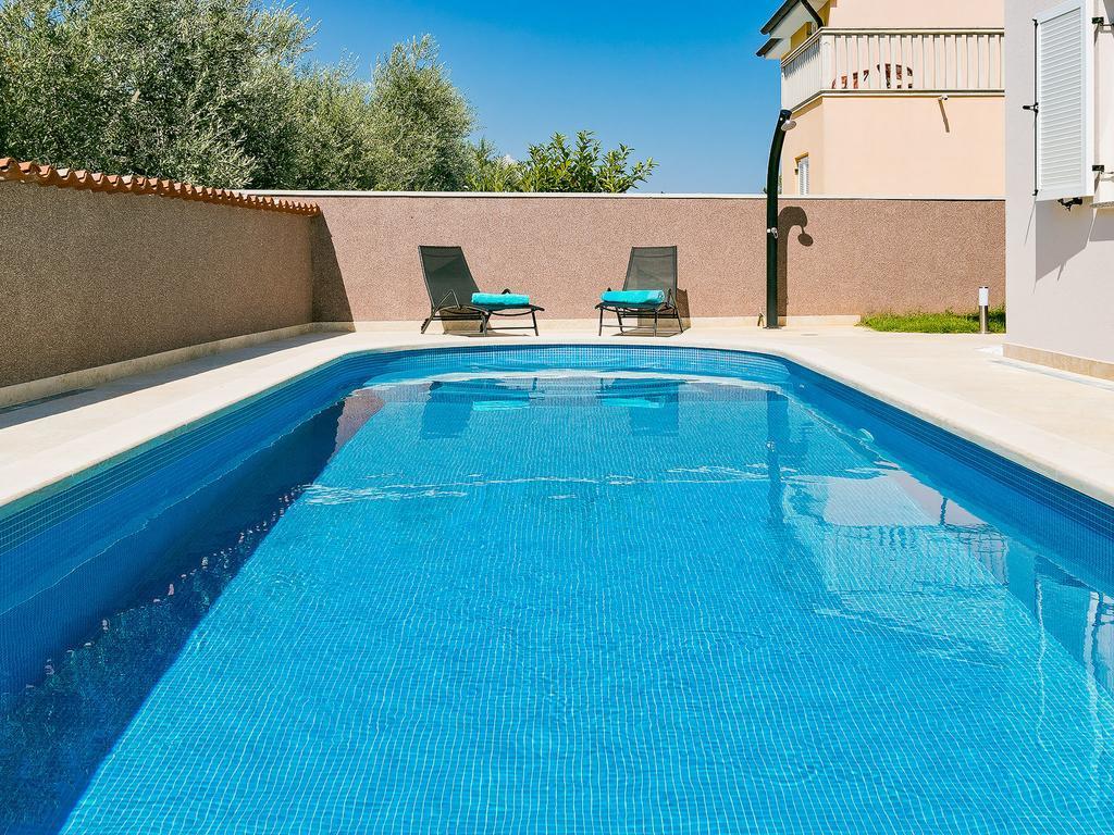 Turistička pristojba nije uključena u cijenu.Lijepa obiteljska kuća "Villa Mamić", na 2 kata. U zaseoku Loborika 6 km od centra mjesta Pula, mirno, sunčano mjesto, 10 km od mora. Za samostalno korištenje: parcela 450 m2 (ograđena), mali vrt - travnjak i bilje, bazen (9 x 4 m, 140 cm dubok, 15.04.-28.10.) s unutarnjim stepenicama i čišćenje bazena elektrolizom soli. Nepravilan oblik bazena. Vanjski tuš, terasa (15 m2), vrtna garnitura za sjedenje, roštilj. 4 -sobna kuća 150 m2 na 2 etaže. Dnevni boravak/blagovaona s TV-om sa sat. prijemnikom (plosnatim TV ekranom), klima uređajem. Izlaz na terasu. Garnitura za sjedenje, ležaljke. Pogled na vrt. Na raspolaganju: sef, dječji krevetić, Internet (wireless LAN [WLAN], besplatan). 1 kućni ljubimac / pas dozvoljen