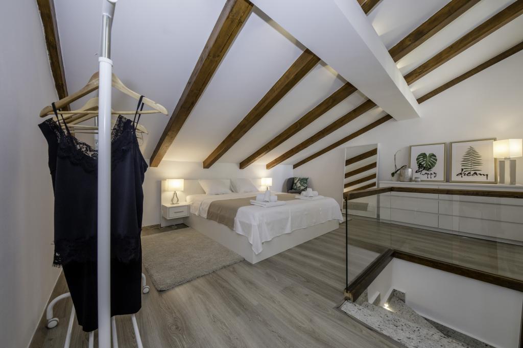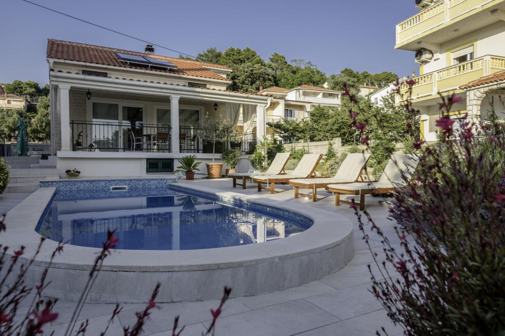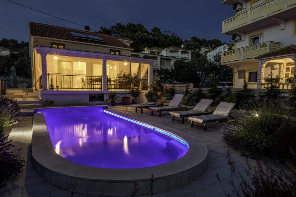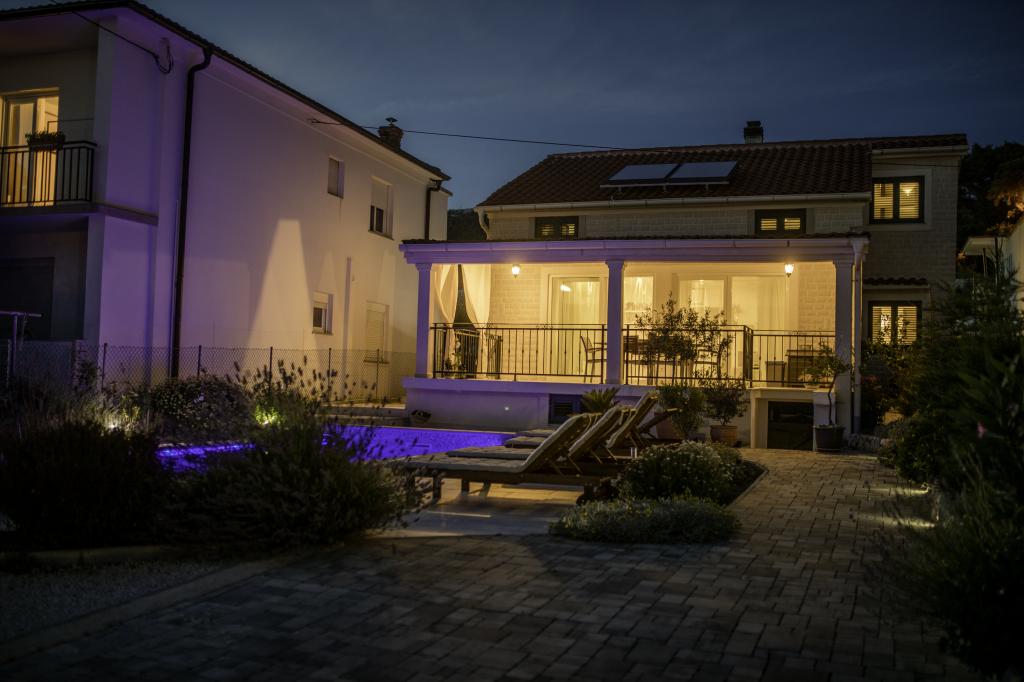 Villa Bella je kuća površine 160 m2 smještena u blizini starog grada Raba i plaže. Kuća ima tri spavaće sobe, dvije kupaonice, kuhinju s blagovaonicom i dnevnim boravkom, odvojenu garderobu te prostor za opuštanje i uživanje u glazbi ili čitanju. Tijekom dana gosti mogu uživati u hladovini terase površine 30m2 ili se opuštati u bazenu. Iza objekta se nalazi roštilj.