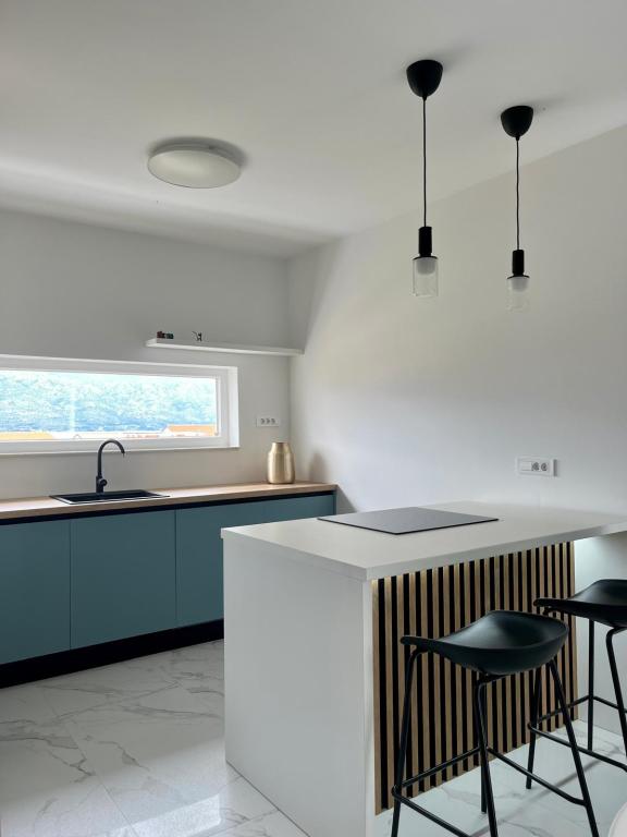 Ugodan smještaj u kući za odmor stvorenoj za uživanje s obitelji i prijateljima udaljenoj nekoliko minuta hoda od plaže. Kuća se sastoji dnevnog boravka, blagovaone, kuhinje, spavaće sobe i kupaonice u prizemlju i tri spavaće sobe i dvije kupaonice na katu. Kuća je prostrana i prozračna te se iz prizemlja izlazi na terasu sa stolom za blagovanje i vanjskim roštiljem. Na katu se nalaze i dvije terase, od kojih je jedna s pogledom na more i Velebit.