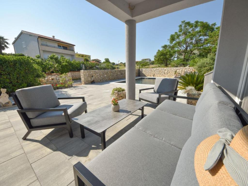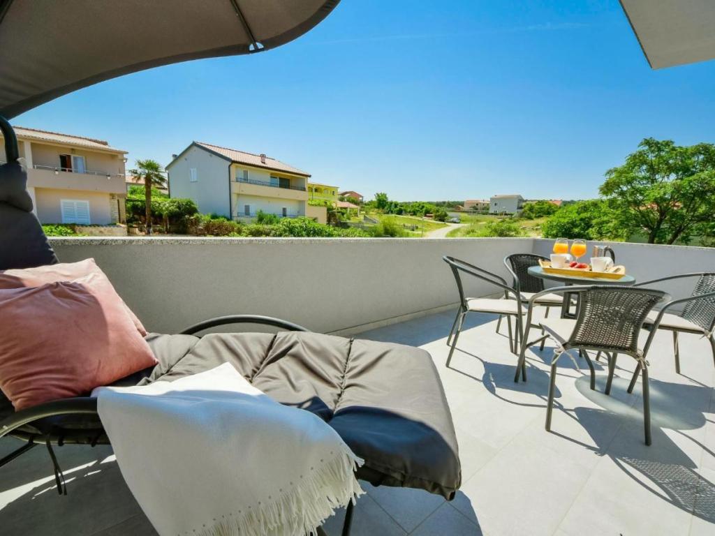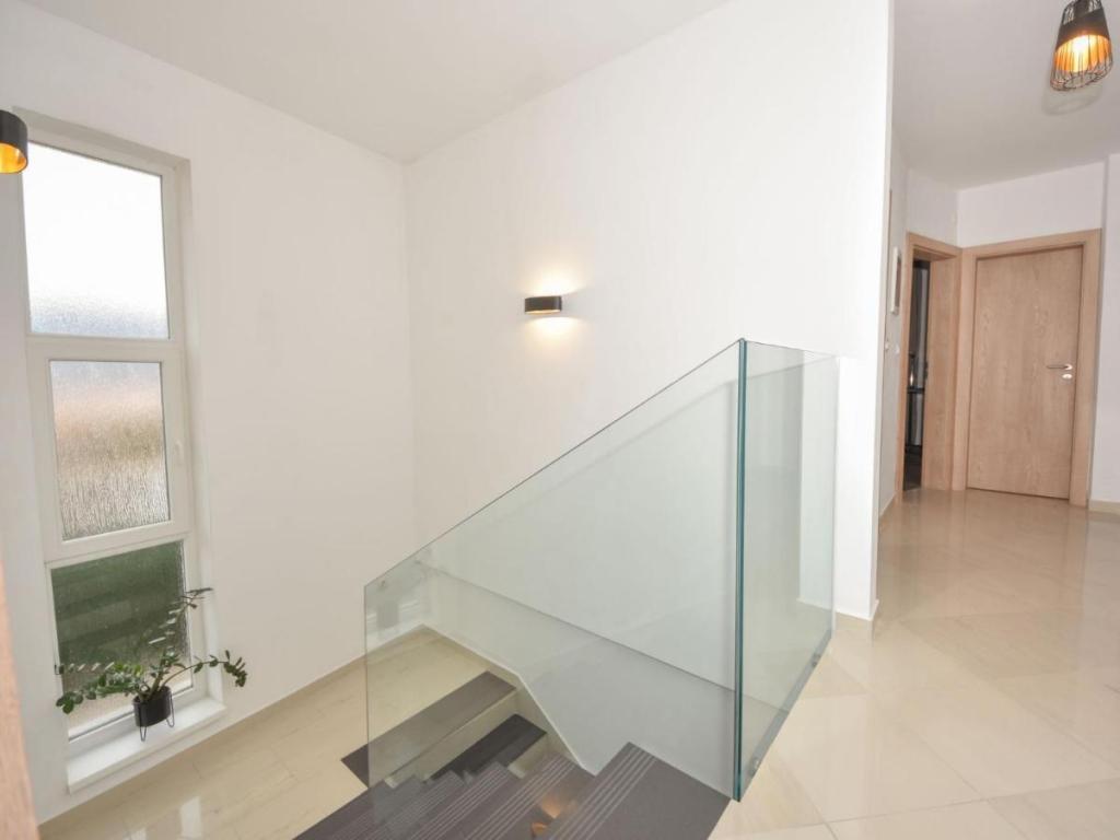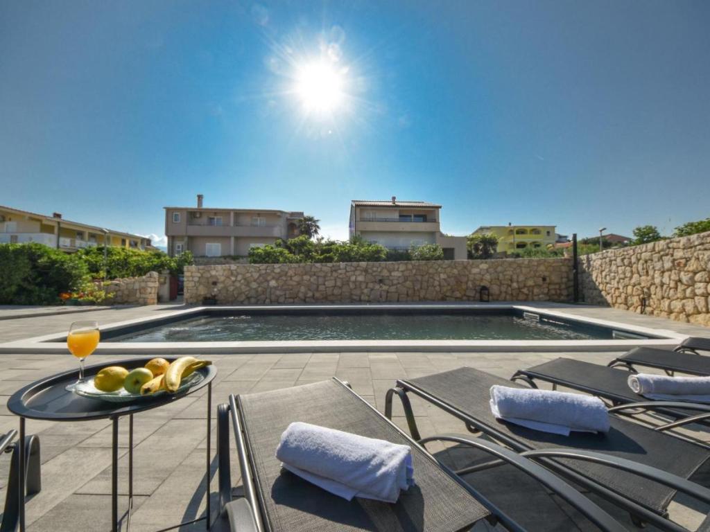 Samostojeća kuća "Villa Matino", na 2 kata. 400 m od centra Ražanca, na mirnom, sunčanom, povišenom položaju, 440 m od mora, 440 m od plaže. Za samostalno korištenje: parcela 500 m2 (ograđena), bazen kutni (8 x 4 m, 32 m2, dubina 145 cm, sezonska dostupnost: 15. svibnja - 15. listopada) s unutarnjim stubištem. Vanjski tuš, roštilj, održavanje bazena od strane vlasnika/vrtlara. U kući: besplatan pristup internetu, perilica rublja. Parking za 3 automobila uz kuću na posjedu. Vlasnik ne prima mlađe grupe. Cijela kuća ima ukupno 4 klima uređaja. Kuća ima ukupno 250 m2 na 2 etaže. Sastoji se od 2 stana koja se iznajmljuju u kompletu (idealno za grupe jer imaju odvojen prostor/privatnost, kao i zajednički prostor za druženje). 1 stan je manji i sastoji se od 2 spavaće sobe (svaka ima veliki bračni krevet dimenzija 180x200cm), 1 kuhinje, 1 blagovaonice, 1 dnevnog boravka, 1 kupaone i 3 terase (2 s pogledom na more). Sadrži veliki TV, besplatan internet u cijelom objektu, perili