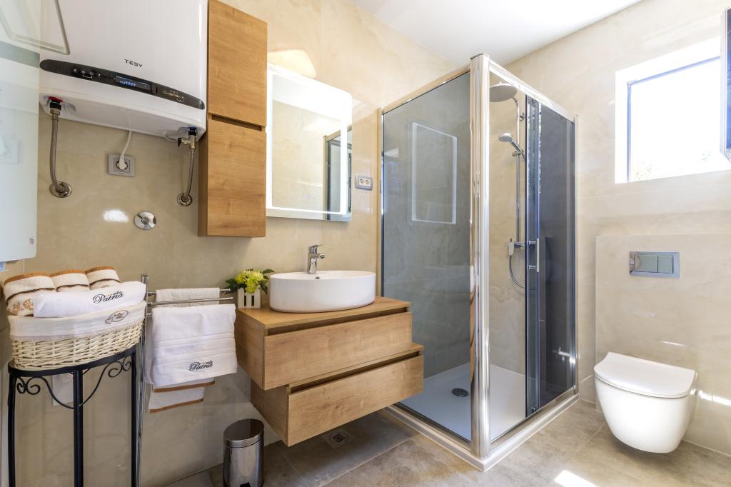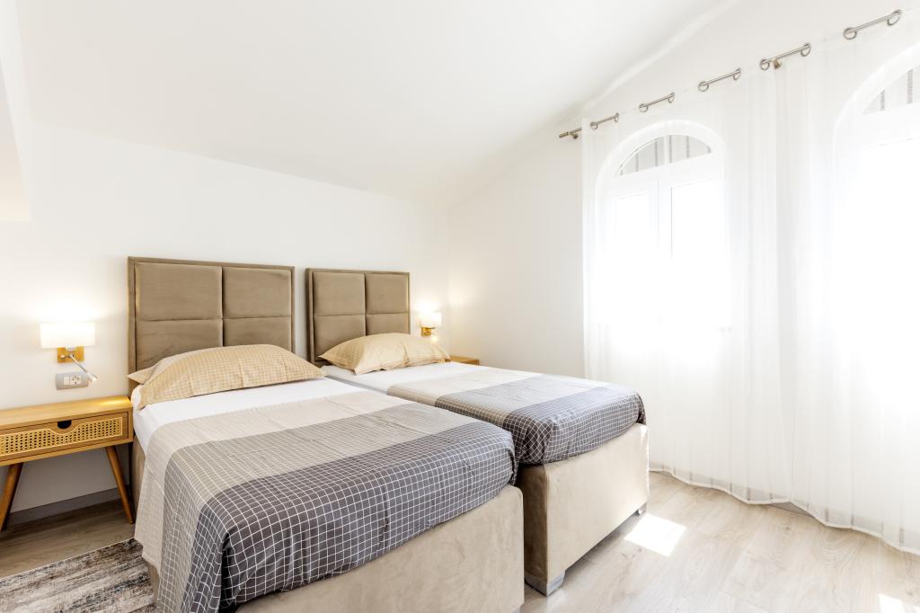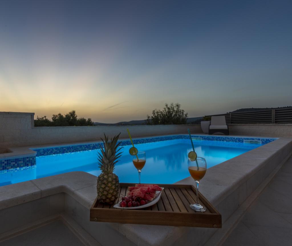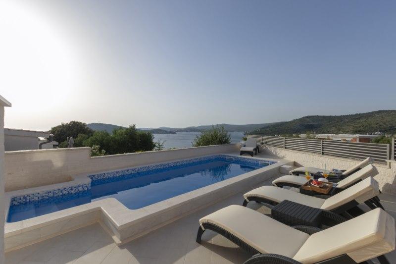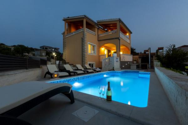 Novoizgrađena kuća za odmor se nalazi na mirnoj lokacije, udaljen od buke i gužve pružajući vam oazu mira za vaš odmor uz otvoreni pogled na kristalno čisto more. Kuća se sastoji od 4 spavače sobe, 2 kupatila, kuhinje i dnevnog boravka, 2 terase i balkon s kojih se pruža pogled na jutarnji izlazak i čarobni večernji zalazak sunca. Na dvorištu se nalazi grijani bazen sa masažnim mlaznicama i ležaljkama, vanjskim tušem te velikim roštiljem koji su samo našim gostima na usluzi. Našim gostima je na usluzi i Fitness teretana u sklopu objekta. Objekt ima 2 vlastita parking mjesta.