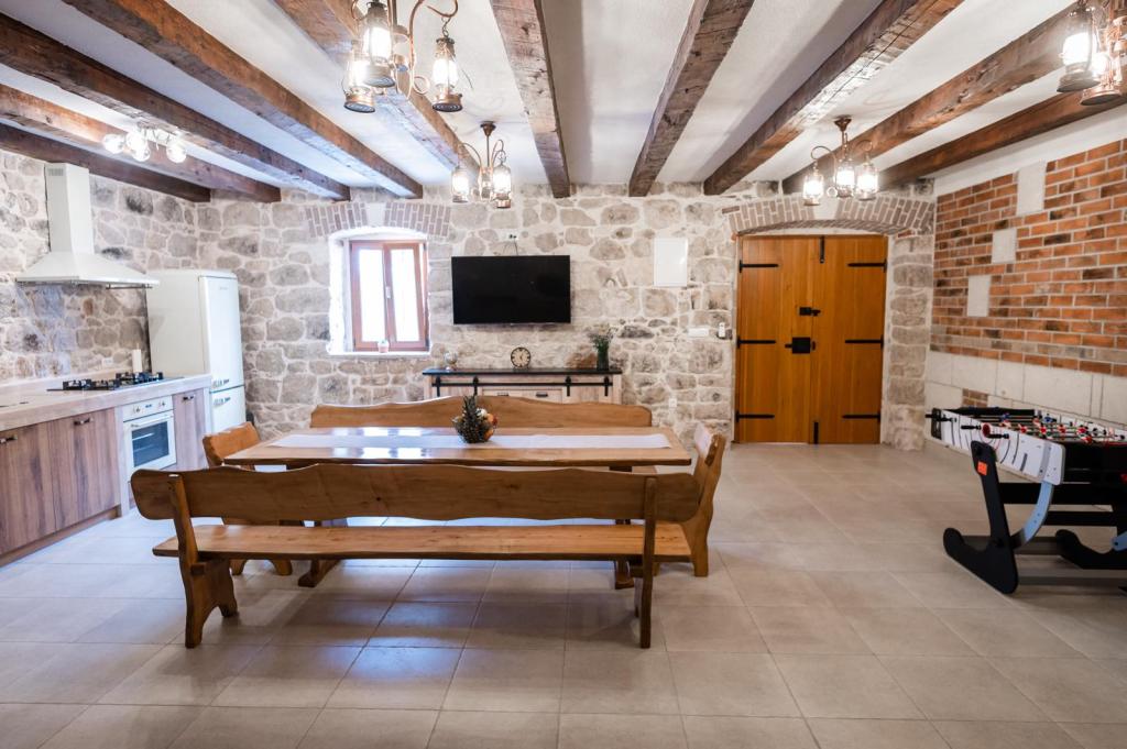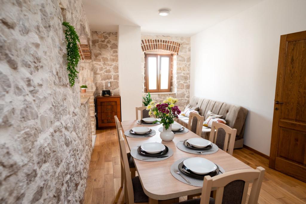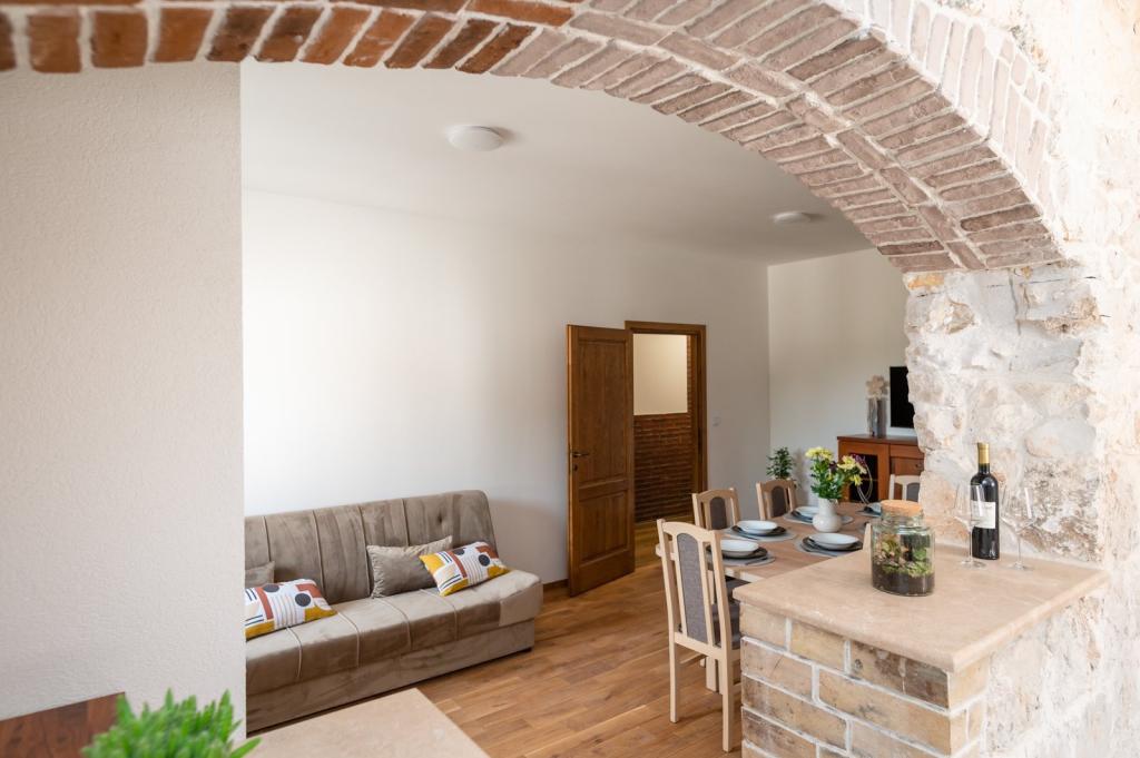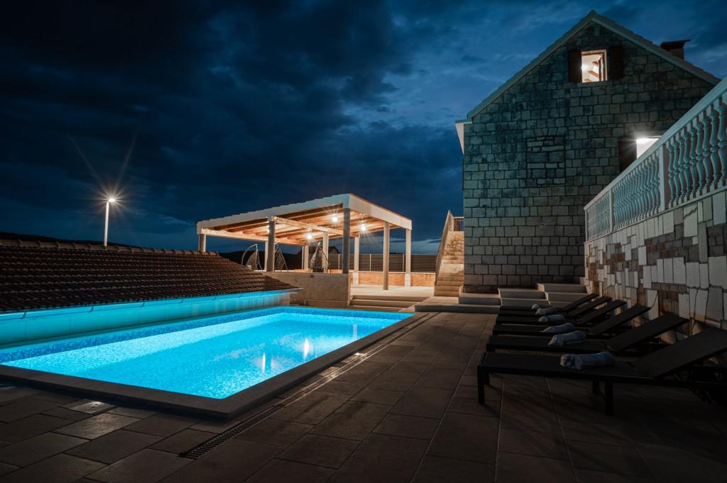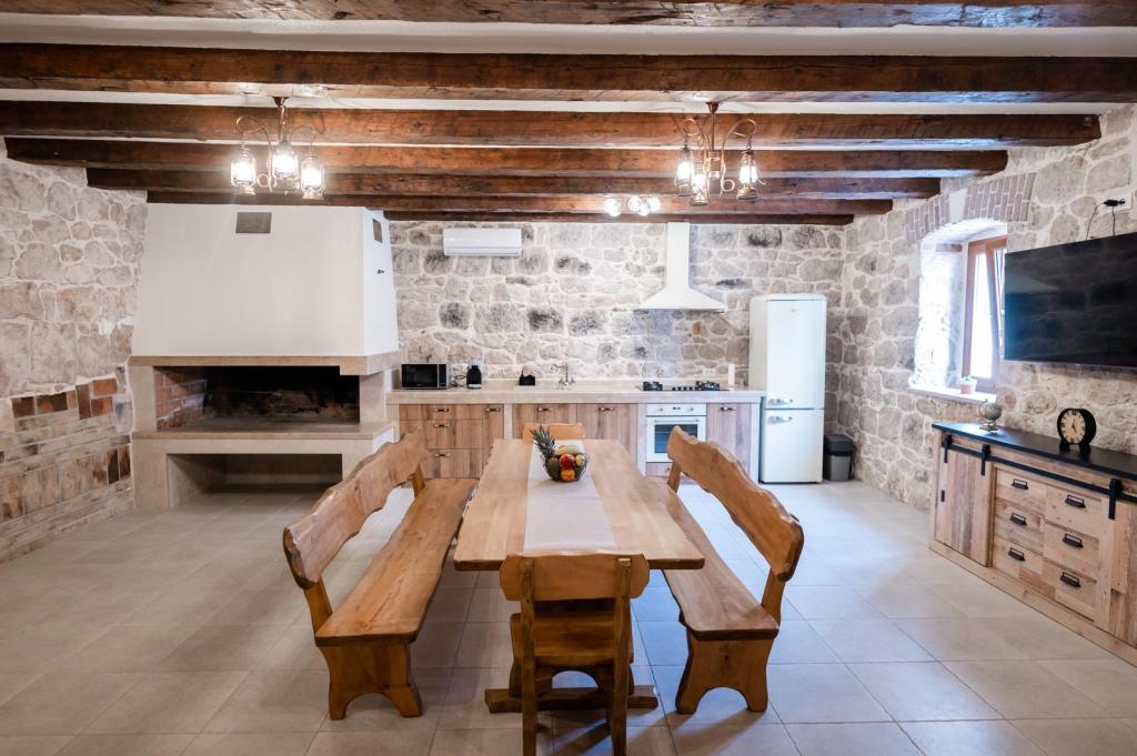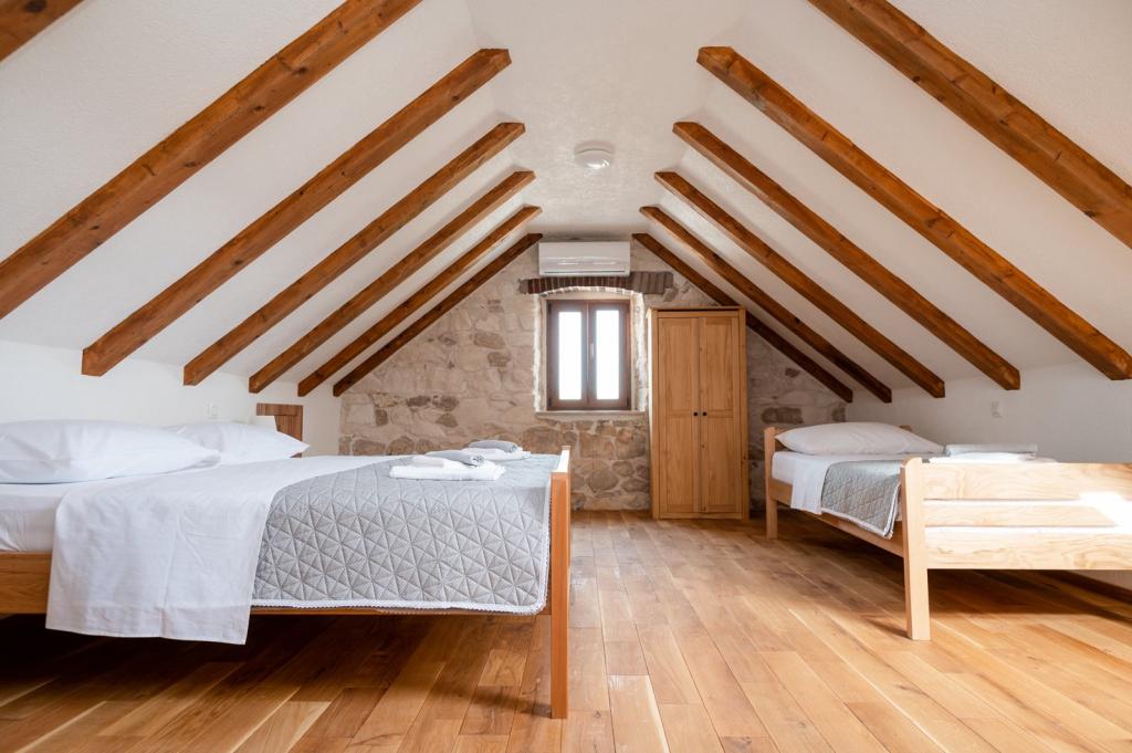 Didova kuća idealni je smještaj za grupe/obitelj koji žele pobjeći od gradske vreve i buke. Nalazi se svega nekoliko km od Rogoznice - poznate turističke destinacije. Kompletno opremljena vila sa privatnim bazenom prostire se na cca 1000 m2. Sastoji se od dvije zasebne jedinice tako da grupe/obitelj mogu biti zajedno a isto tako imati privatnost. Sveukupno 4 spavaće sobe, 5 kreveta ( 4 bračna , 1 za jednu osobu), 2 kupaonice. Konoba za zajedničko druženje sa potpuno opremljenom kuhinjom, unutarnjim roštiljem, stolnim nogometom te toaletom. Sve jedinice su klimatizirane. Gosti mogu uživati u privatnom bazenu sa morskom/ slanom vodom, sunčati se na ležaljkama ili pak odmarati u hladovini prostrane natkrivene terase te uživati u zvuku cvrčaka i žuboru malog potočića. U sklopu objekta nalaze se 2 garaže te parking za 4 automobila. Biciklističke staze nalaze se u neposrednoj blizini objekta.