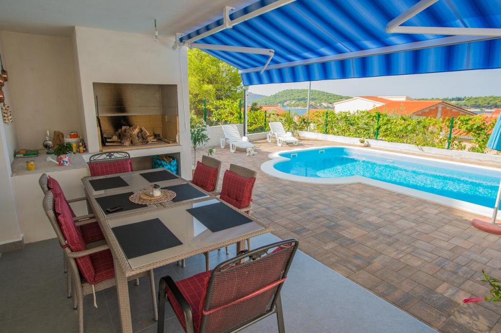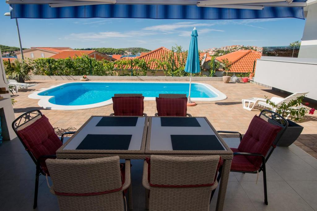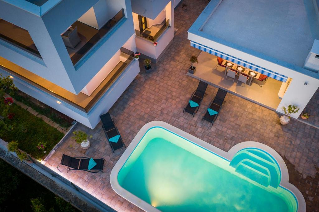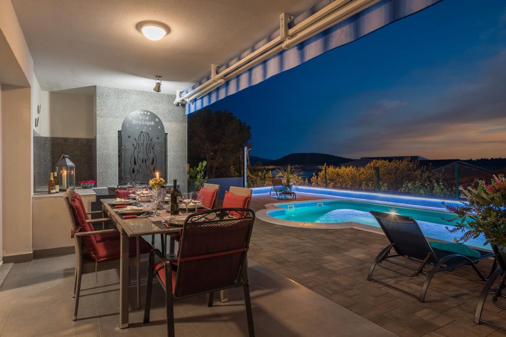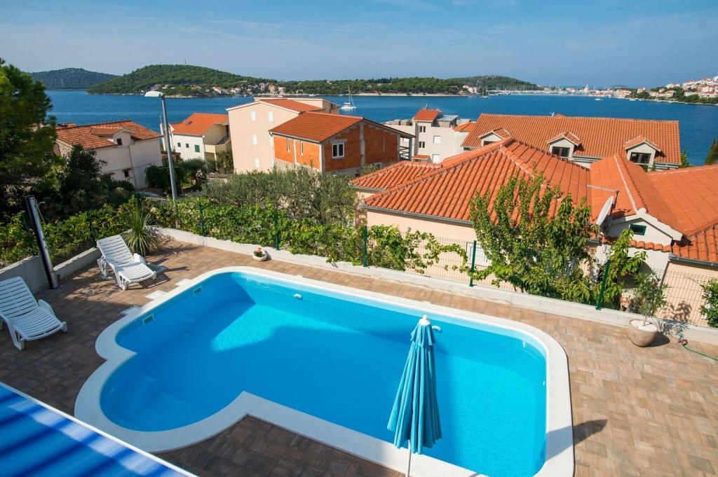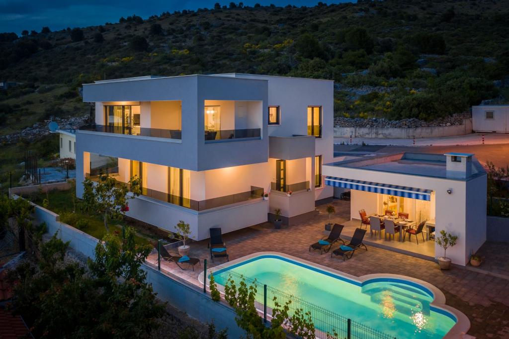 Kuća može primiti 9 gostiju. Ležajevi su raspoređeni u spavaćim sobama kojih ima 4, unutar 200m2. Gosti mogu uživati u pogledu na more sa vlastite terase. Za potpuni užitak i opuštanje tu je i privatni roštilj za goste samo ovog smještaja. Za vrijeme svog boravaka gosti se mogu opustiti u privatnom bazenu. Pozicija: ZATOGLAV - ROGOZNICA (3 km) ŠIBENIK - Šibensko - Kninska Županija prizemlje→dvoetažna Površina: 168 m2 39 m2 (Terasa 1, Terasa 2) Broj ležaja: 9 Kategorizacija: 4 Prijevoz: Aerodrom - Villa - Aerodrom Dodatne usluge i troškovi -Klimatizacija • Završno čišćenje • WiFi • Glačalo • Daska za glačanje • Sušilo za kosu • Bazen • Parkiralište • Boravišna pristojba: Uključeno u cijenu Depozit 700, 00 € / jednokratno, - plaća se iznajmljivaču u gotovini na dan dolaska, a gostu se puni iznos vraća na dan odlaska ako za vrijeme boravka nije prouzročio nikakvu štetu akontacija za rezevaciju iznosi 35% od ukupnog iznosa Akontacija - instrukcije za plačanje: Stana Brušnjak Zatoglav 22203 Rogoznica PBZ IBAN HR2340 0093 1131 2960 6 SWIFT PBZGHR2x ŽIRO RAČUN U DEVIZNOJ VALUTI.
