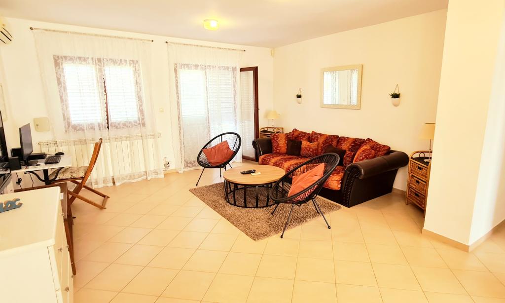 Velika vila. Moderna, luksuzno opremljena klima uređajem, TV-om, wi-fiom. Zgrada vile je nova i otprilike 150 metara od mora i pješčane plaže "kraljica plaže ". Nalazi se na vrlo ugodnom i mirnom području. Morska obala je pješčana i lako se pristupa moru s nekoliko pristaništa. Vlasnici su ljubazni i uslužni.