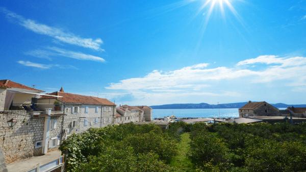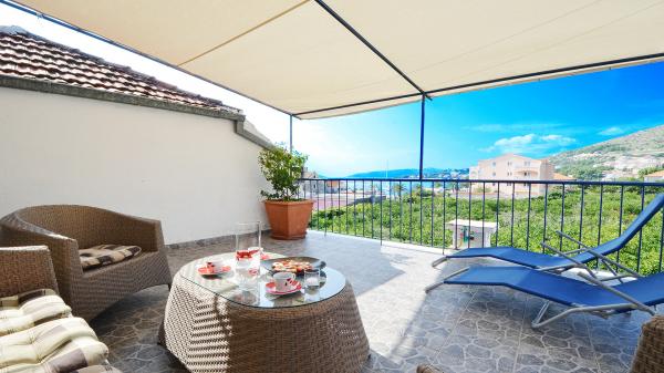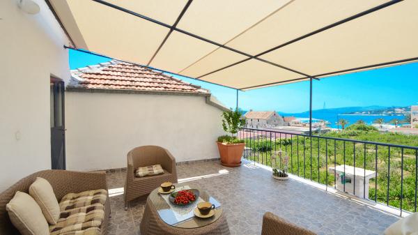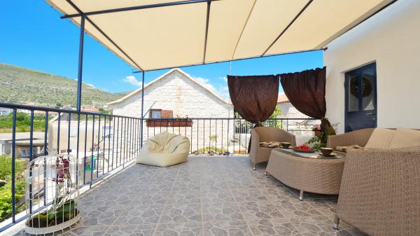The location of the house is fantastic! This villa unique, spacious residence has panoramic views of the Adriatic Sea from each side of villa. A short distance from the town Trogir and Medena area, where you can enjoy water sports, bars, restorants, daily entertainment program. The sea water is crystal clear. Airport Split is 8 kilometres away. If you are coming by boat or by train to Split, bus terminal is right there and they\\re all conveniently located in the harbour, or we can organize for you transfer.