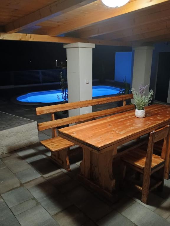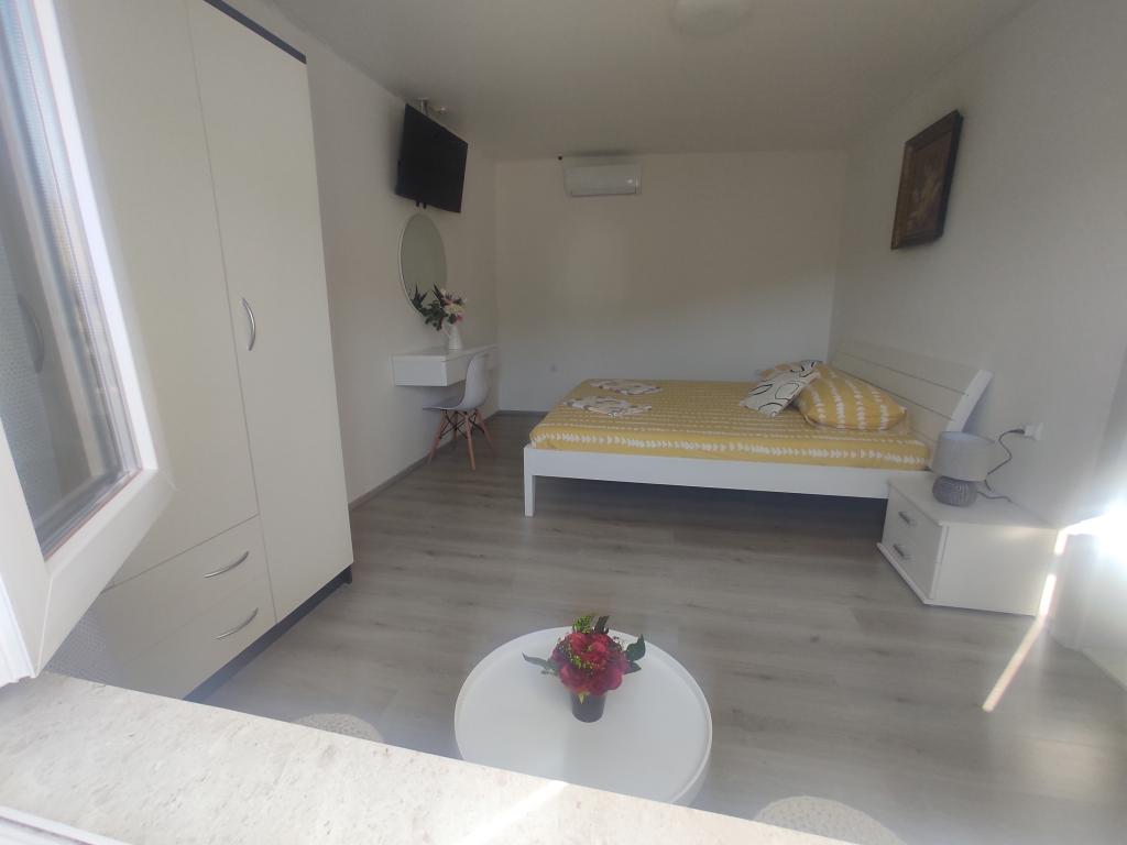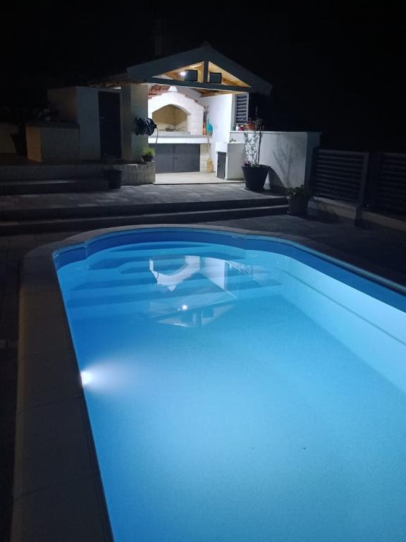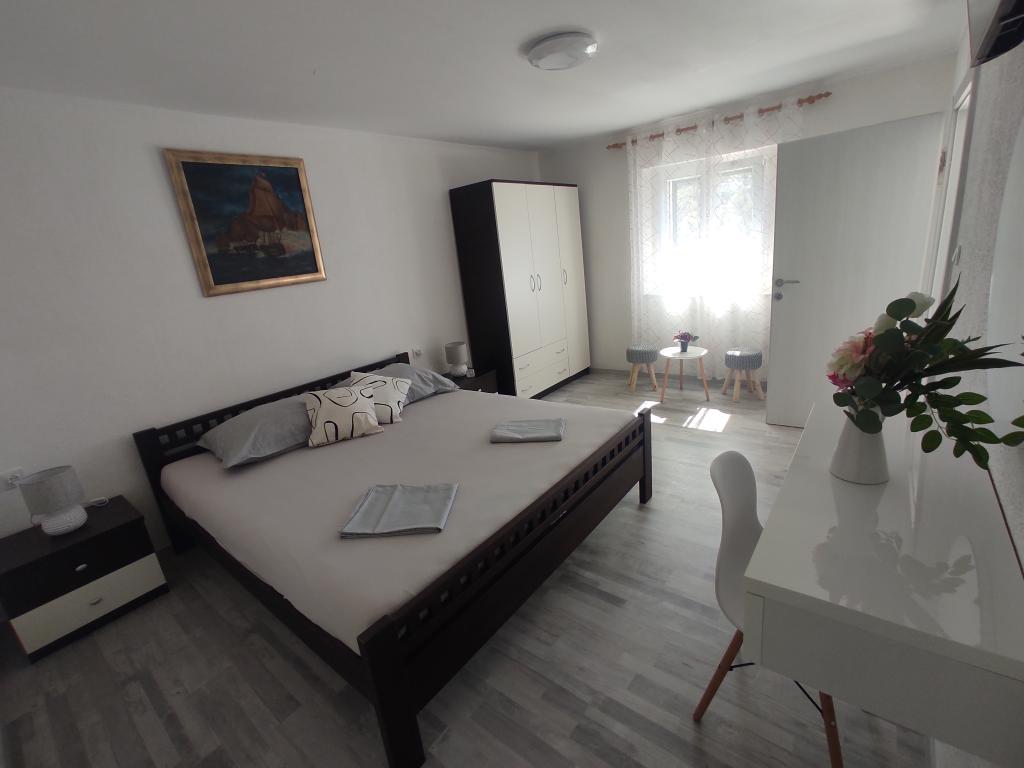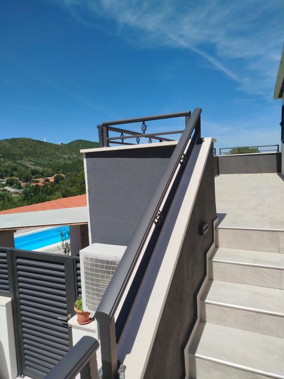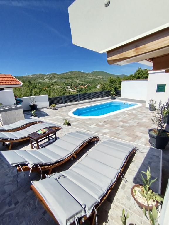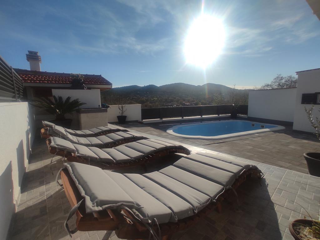 Kuća se nalazi u mirnom selu Ljubitovica, 20km udaljenom od UNESCO grada Trogira i 18km od prve plaže. Ako želite uživati okruženi prirodom i u privatnosti, naša kuća je idealna za Vas. Kuća se sastoji od prizemlja i prvog kata, povezani vanjskim stubištem. U prizemlju (dvorište) je grijani bazen, vanjski grill, jedan toalet s tušem te u unutrašnjem dijelu kuhinja (posuđe, frižider, perilica posuđa, pećnica) s klimatiziranim dnevnim boravkom. Na katu su dvije spavaće sobe. Svaka soba je klimatizirana te ima smart TV. U sobama su bračni kreveti te je na raspolaganju (u svakoj sobi) po jedan pomoćni ležaj za jednu osobu. Na zahtjev, bez dodatne nadoplate, je moguće gostima dati i putni dječji krevetić. Između spavaćih soba se nalazi toalet s tušem i perilicom rublja (ručnici osigurani). Ispred soba je velika terasa. Parking je osiguran kao i vanjska ljetna garnitura za odmor i objedovanje (natkriveni dio dvorišta).