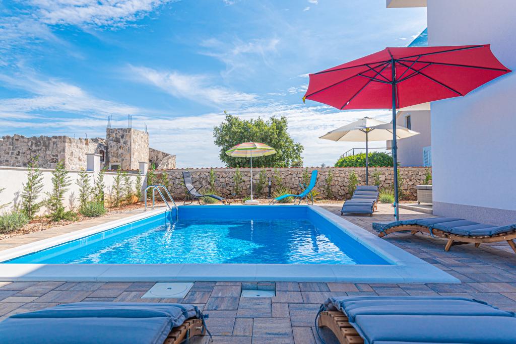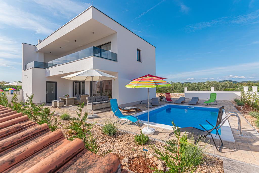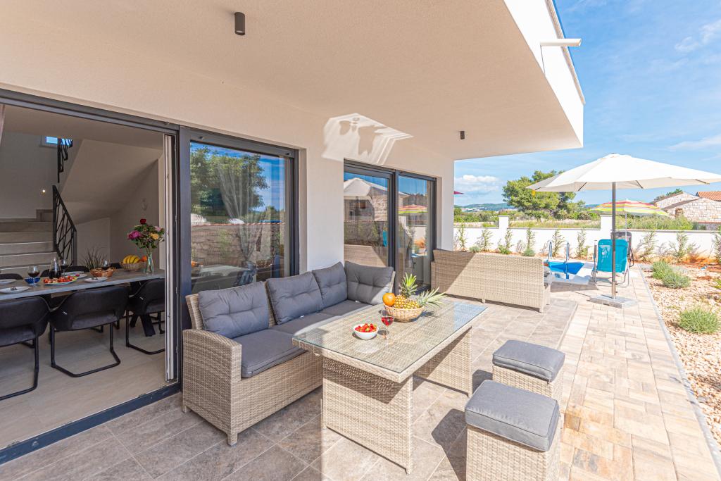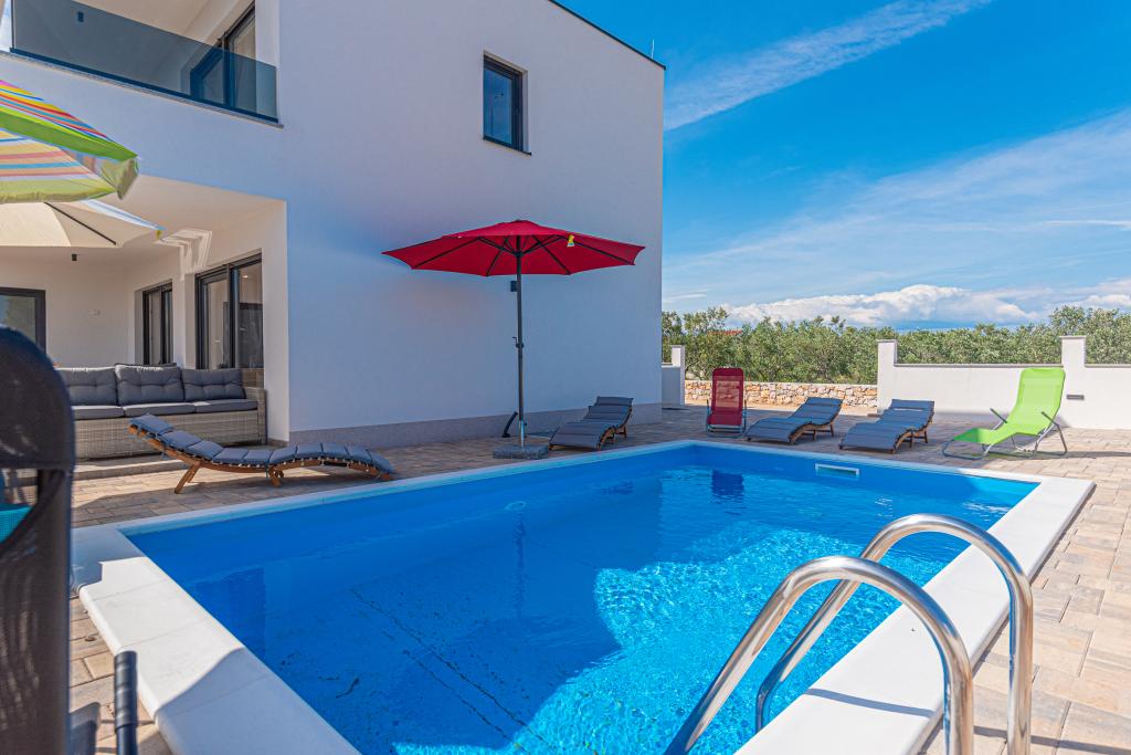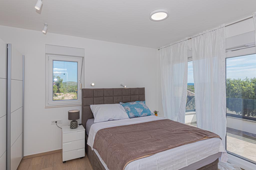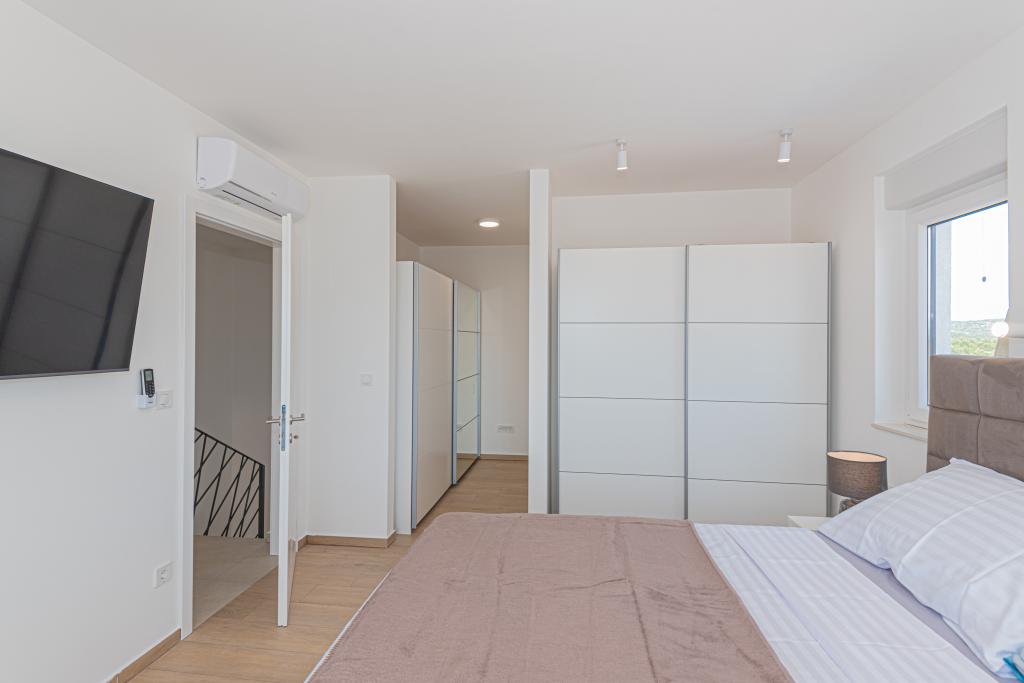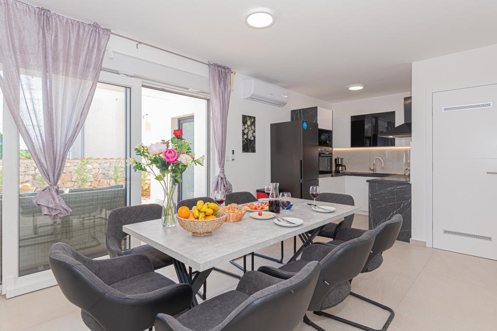 Villa Adriatic Sunrise – Mirni odmor u blizini Šibenika Uživajte u opuštanju u Villi Adriatic Sunrise, predivnoj kući za odmor s grijanim privatnim bazenom i klimatiziranim prostorijama, savršenoj za bijeg od svakodnevice. Smještena u blizini povijesnog grada Šibenika, ova prostrana vila nudi predivne poglede s velike terase, idealne za uživanje u suncu i mirnom okruženju. Vila se sastoji od četiri elegantno uređene spavaće sobe, udobnog dnevnog boravka i tri televizora s ravnim ekranom, za vašu zabavu i opuštanje. Kuhinja je potpuno opremljena s perilicom posuđa i pećnicom, što vam omogućuje da uživate u pripremi obroka. Tri moderne kupaonice s tuševima na razini tla pružaju luksuz i udobnost tijekom cijelog boravka. Vanjski prostor je idealan za uživanje na svježem zraku, bilo da se opuštate uz obrok u vanjskoj blagovaonici ili uživate u osvežavajućem kupanju u bazenu. Ova vila nudi besplatan privatni parking, besplatan WiFi, te svježe ručnike i posteljinu za potpunu udobnost.