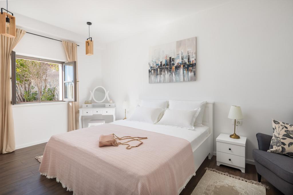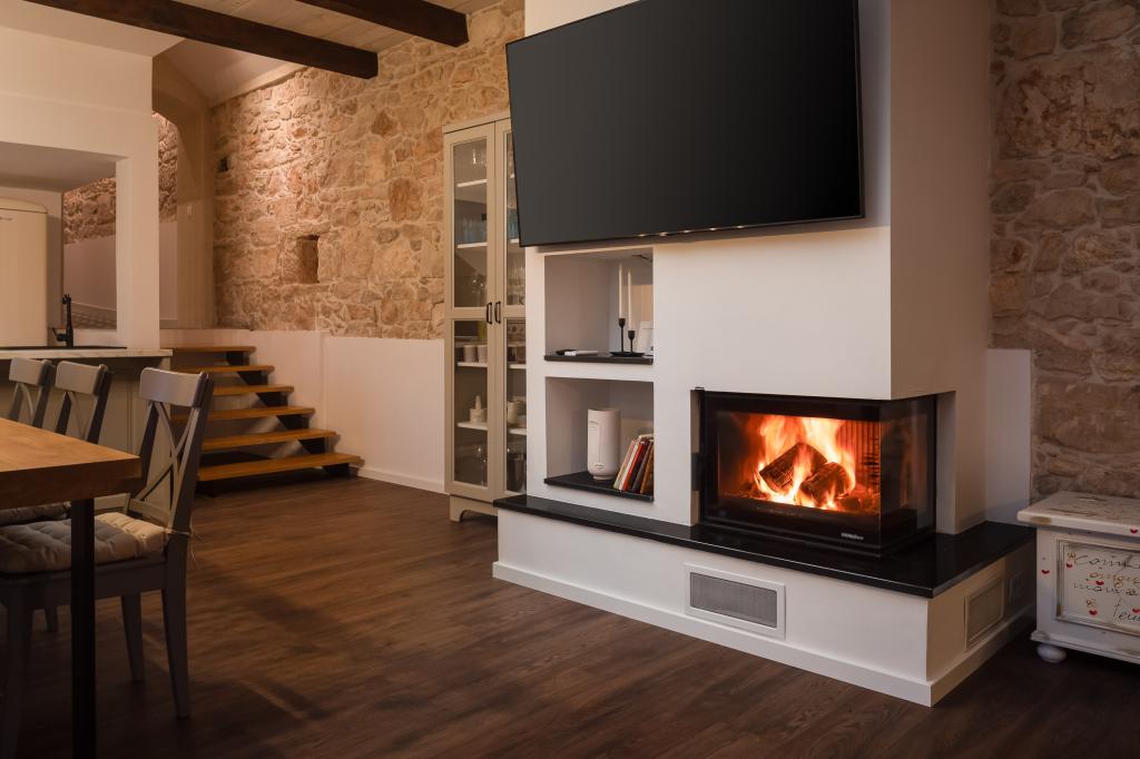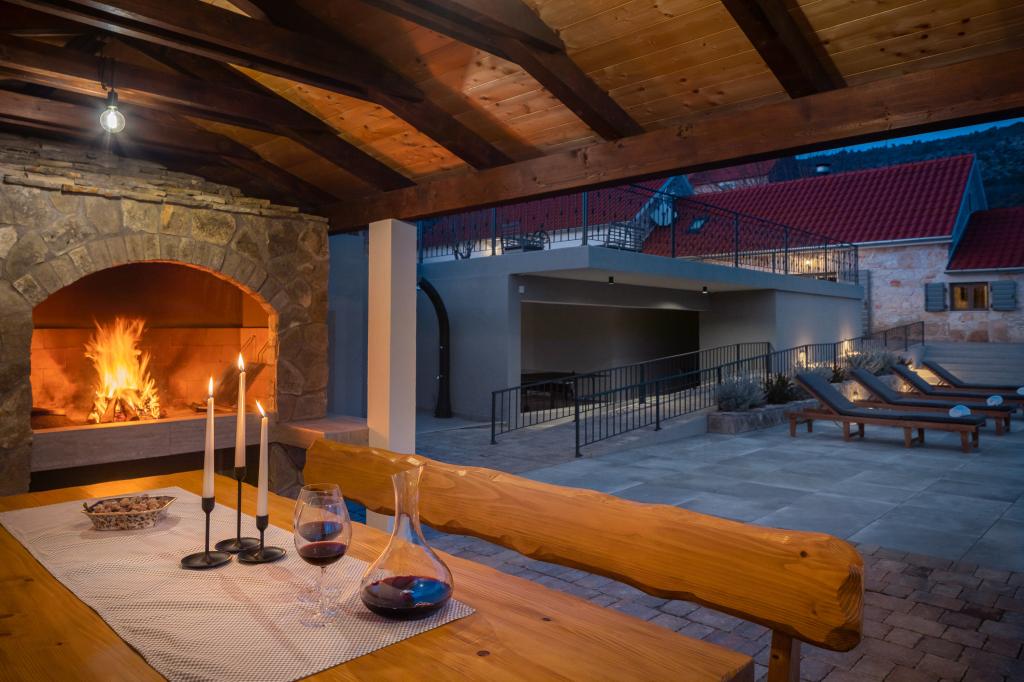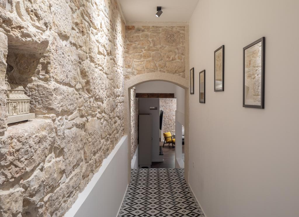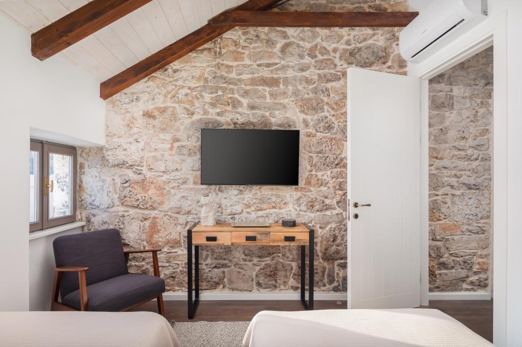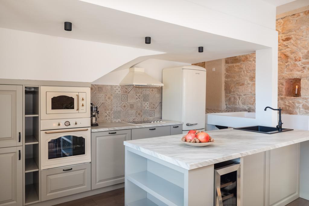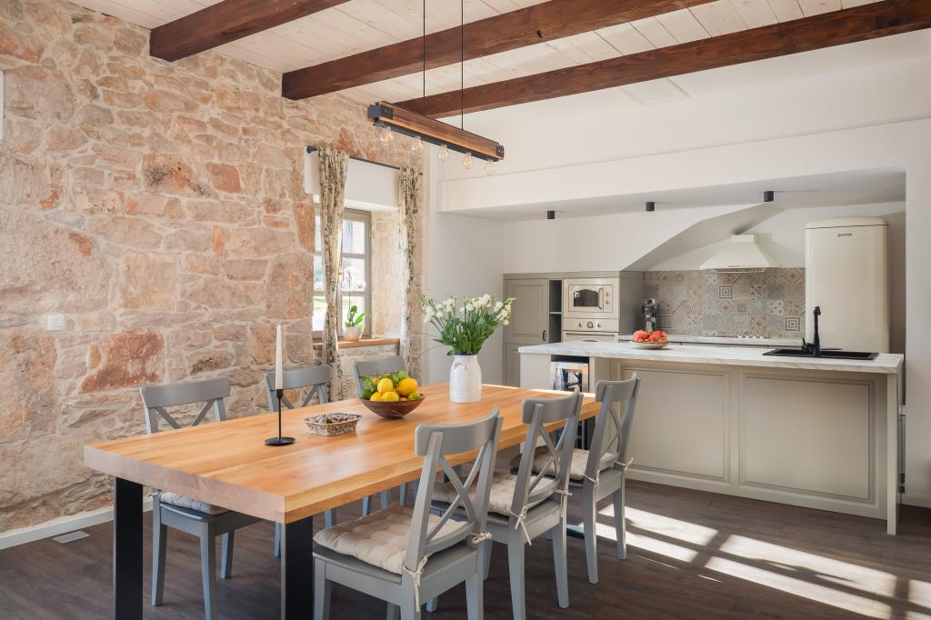 Želite li osjetiti čari Dalmacije okruženi zelenilom ,daleko od svakodnevne gužve, naša autentična kamena kuća u predgrađu Šibenika je idealna za vas. Interijer od 160 m2 u kombinaciji kamena ,drva i modernih motiva stvara izuzetan osjećaj topline i udobnosti. Kuća može primiti u goste 8 osoba u tri sobe sa krevetima i vlastitim kupaonicama. Dva dodatna ležaja mogu se prirediti u dnevnom boravku. Na usluzi je i dječji krevet. Kuhinja je potpuna uređena sa svim potrebnim za kuhanje i pečenje. Prostrana terasa i vanjska blagovaonica su idealne za druženje uz roštilj na vanjskom kaminu. Po potrebi tu je i plinski roštilj . Velika okućnica (1390m2) sa livadom i šumom (+ 2200m2) idealna je za razigranu djecu i kućne ljubimce. U velikom i lijepom bazenu ( 86 m2). možete u svakom trenutku naći osvježenje. BAZEN JE PRILAGOĐEN ZA OSOBE SA INVALIDITETOM I IMA UGRAĐENO GRIJANJE Plaže, restorani ,NP Krka , kulturni spomenici i spomenici pod zaštitom UNESCO-a ,udaljeni su 8 kilometara