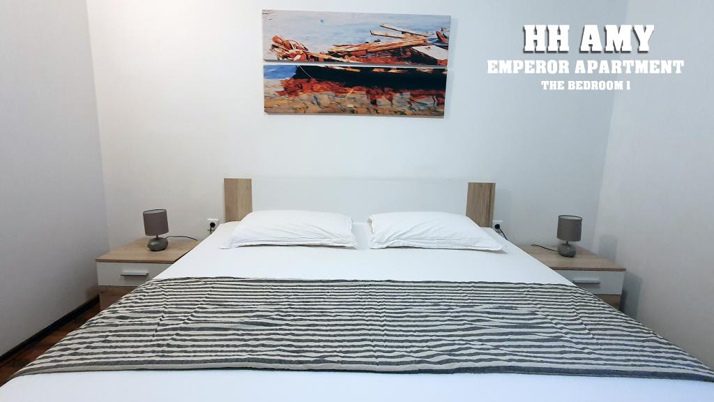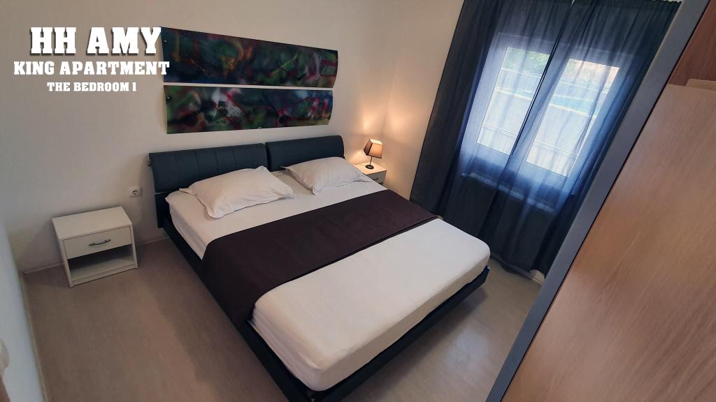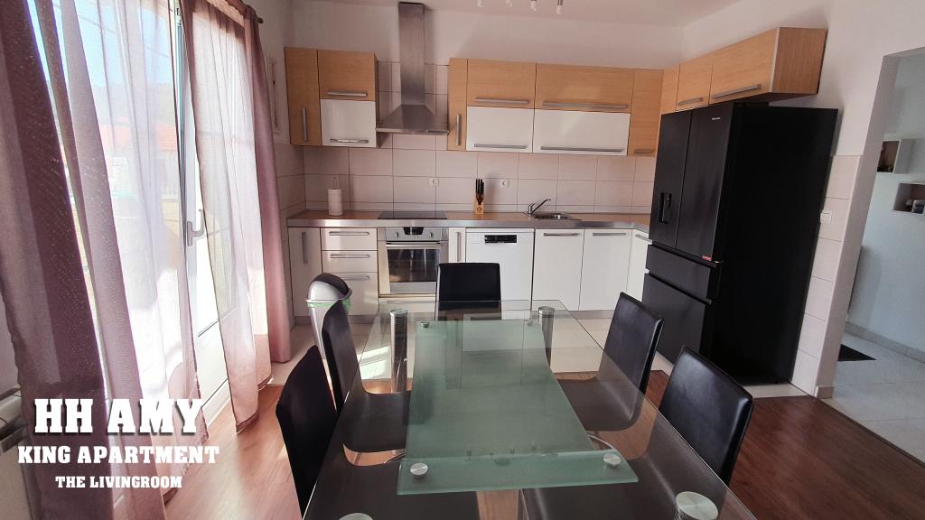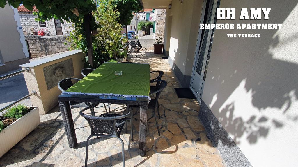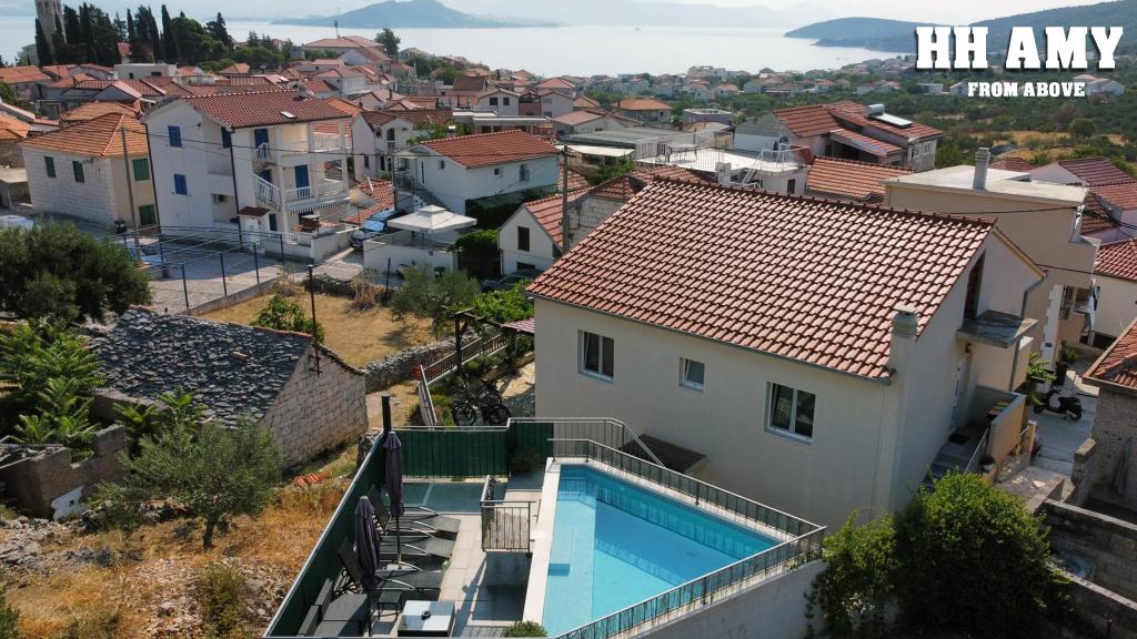 Kuća za odmor Amy sastoji se od dva komforna apartmana, tako da imate punu privatnost i prostora za najviše 8 osoba. Emperor apartman se nalazi u prizemlju a King apartman na katu. Svaki ima poseban ulaz, kuhinju, kupaonicu i toalet te su potpuno opremljeni za vaš ugodan boravak. Svaki apartman prima 4 gosta, i svaki ima 100m2. King apartman (100m2) nalazi se na prvom katu kuće i ima veliku terasu i balkon, dvije spavaće sobe, kupaonicu, WC, veliki dnevni boravak. Namijenjen je za pet osoba. Emperor apartman se nalazi u prizemlju kuće (100m2) i sastoji se od velikog dnevnog boravka, kuhinje, dvije sobe, dva kupatila. Slatine su malo ribarsko i turističko mjesto na dalmatinskoj obali, sjeveroistočnoj strani otoka Čiova, 8 km udaljeno od Trogira. Otok Čiovo prepoznatljiv je bogatom vegetacijom i stjenovitim i šljunčanim plažama.