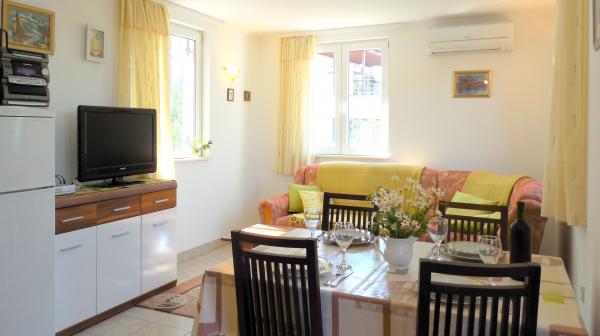 Ova prekrasna vila Sunray sa dva stana srdačno vas poziva da uživate u odmoru. Oba stana protežu preko 57 m² veličanstvene bijele vile uz more. U vedro uređenoj kući za odmor pronaći ćete dvije spavaće sobe sa bračnim krevetom i dvije spavaće sobe sa dva odvojena kreveta. Dnevni boravak je otvorenog tipa, sa blagovaonom, velikim kaučem na razvlačenje za još jednu osobu, sa satelitskim TV i stereo sustavom i vodi izravno na uređenu terasu: lijepo mirno mjesto u hladu u vrućim ljetnim danima. Potpuno opremljena kuhinja ima sve spremno da Vama i Vašoj obitelji pruži radost kuhanja. U kupaonici je tuš, WC i bide, te mašina za pranje rublja. Vila Sunray se iznajmljuje samo u cjelini. Navedene cijene su za cijelu kuću, znači apartman A1 i A2 zajedno.