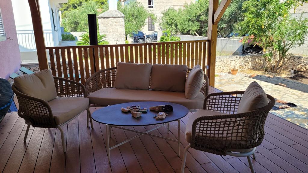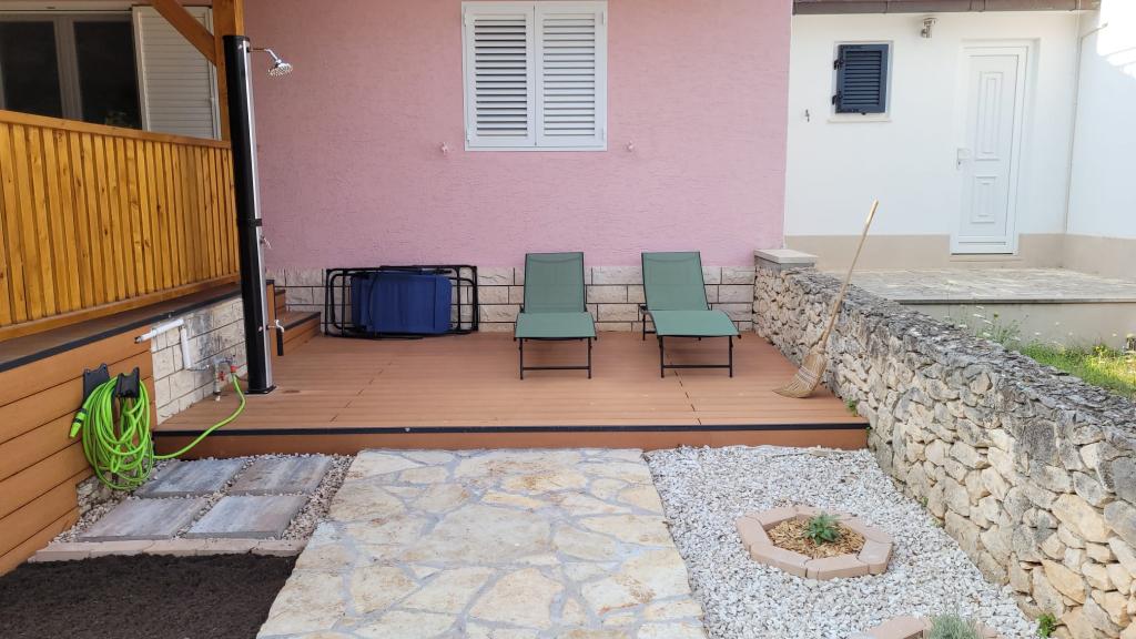 Holiday Home Roza je novo renovirana i prostrana oaza. Naša velika kuća nudi četiri udobne spavaće sobe, dvije kupaonice te dodatni toalet, što pruža dovoljno prostora za sve. Uživajte u udobnosti potpuno opremljene kuhinje, gdje ćete pronaći sve što vam treba za pripremu omiljenih jela, vaše jutarnje kave ili čak osvježavajućeg sladolednog deserta. Život u Holiday Home Roza prirodno se nastavlja na naše predivne vanjske prostore. Opustite se na prostranoj natkrivenoj terasi, savršenoj za objedovanje na otvorenom ili jednostavno uživanje u otočkom povjetarcu, bez obzira na kišu ili sunce. Zasukajte rukave i pripremite ukusna jela na roštilju, opustite se u našem uređenom vanjskom kutku, večerajte za velikim vanjskim stolom i rashladite se pod osvježavajućim vanjskim tušem s toplom vodom nakon dana provedenog na plaži. Nalazi se u neposrednoj blizini pješčane plaže, gdje možete pronaći i Beach Bar. U blizini je i pekarnica u kojoj možete kupiti svježe pekarske proizvode.