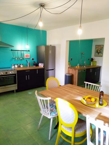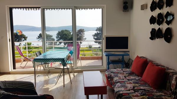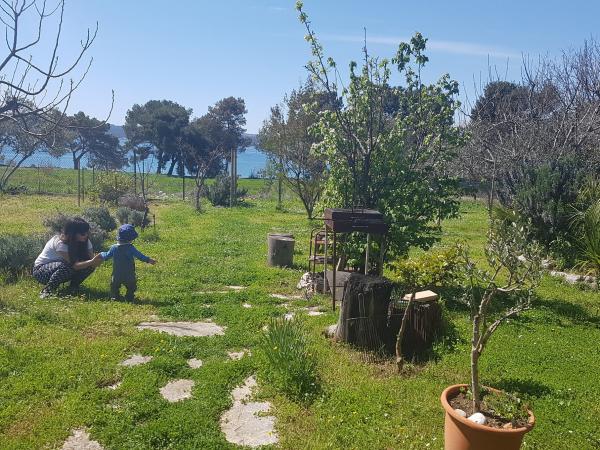 Kompletno i suvremeno opremljena kuća sa 2 odvojena apartmana i zajedničkom kuhinjom i vrtom. Svaki apartman ima kuhinju, klimu te fenomenalan pogled na more. Idealno za dvije obitelji jer osigurava privatnost, ali i prostor za zajednička druženja. Kuća ima 3 kupaone, perilicu suđa i perilicu rublja. Vrt je prostran i prekrasan. Jedan apartman je 4 2, a drugi 2 2. Osiguran besplatan parking za 2 osobna automobila. Napomena: kuća nije samostojeća. Za djecu u vrtu imamo maleni tobogan i ljuljačku te imamo na raspolaganju dječji putni krevetić i sjedalicu za hranjenje.