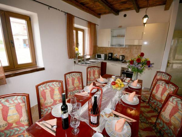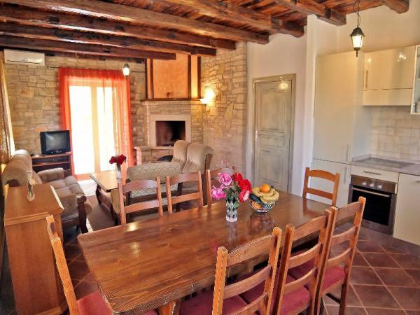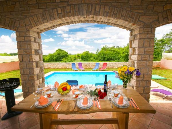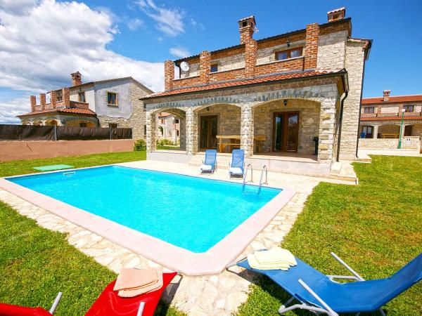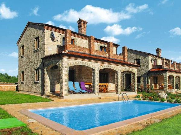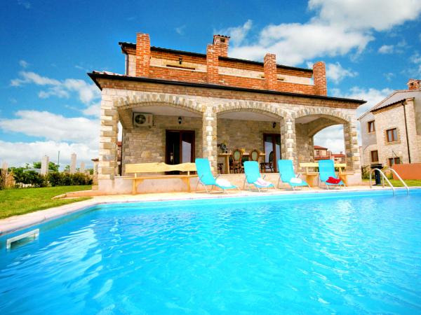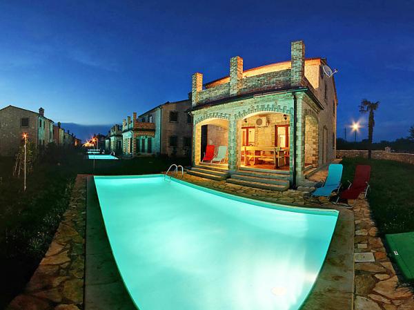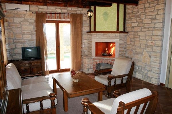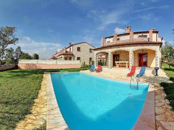 kompletno opremljena vila sa bazenom u okolici Pule. vila je za 8 osoba. vila ima 4 spavaće sobe, 3 kupaonice, kuhinju i dnevni boravak. kompletno je opremljena:perilica suđa, klima, tv, satelitska, . kuća ima svoj privatan parking i bazen, 2 terase i roštilj. izgrađena je od kamena. unutrašnjost kuće je napravljena od drva i kamena.