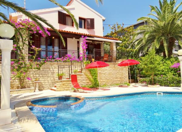Villa ADRIATIC GEM - Broja osoba : 6 - Spavaće sobe : 3 - Bazen sa jaccuzzi - Od 230 € / noć Dobrodošli u Villu Adriatic Gem! Ova šarmantna mediteranska vila s privatnim bazenom smještena je u prekrasnom vrtu na srednjodalmatinskoj obale u mjestu Seget Vranjica 5 km od Trogira , u blizini Splita , UNESCO baština s nevjerojatnim starim gradom . Vila se nalazi samo 80m od obale mora i stjenovite plaže. Adriatic Gem je selfcatering kuća za odmor za iznajmljivanje i ugodan smještaj za 6 osoba sa 3 spavaće sobe i 2 kupaonice s pogledom na otoke trogirskog arhipelaga preko plavog Jadranskog mora . Najbliži restorani , kafići , dućani i šljunčana plaža s ljetnim barom su u neposrednoj blizini vile u centru naselja . Ova vila je komforna privatna kuća za odmor u Hrvatskoj idealna za parove , manje grupe i obiteljski odmor sa djecom. Više detalja na www.croatianmediterraneanvillas.com