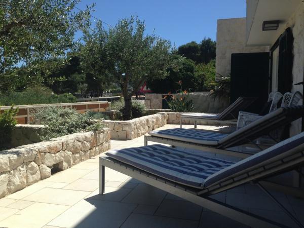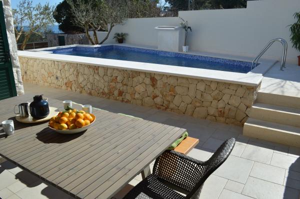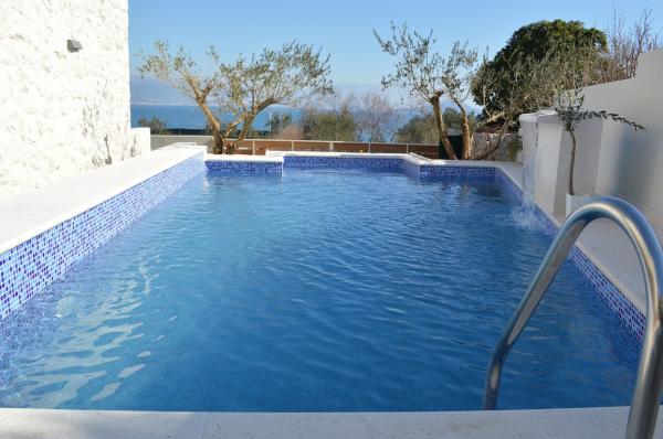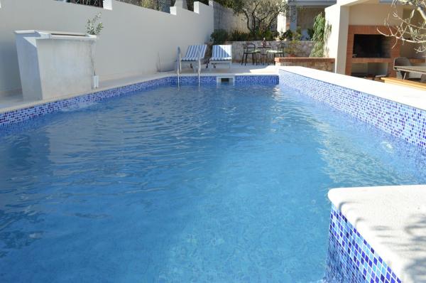 Villa Trogir idealno je mjesto za provesti godišnji odmor sa svojom obitelji i prijateljima, samo nekoliko koraka udaljena od mora. Nalazi se u neposrednoj blizini drevnog grada Trogira u središtu Dalmacije, Hrvatskog najpopularnijeg turističkog odredišta. Vrlo laka za pronaći, u blizini svih dalmatinskih kulturnih i prirodnih znamenitosti. Villa je ukrašena bijelim kamenom u starom dalmatinskom stilu. Oko kuće se nalazi prekrasan vrt s mediteranskim raslinjem, maslinama, lovorom i lavandom okružen malim zidovima od otočkog kamenja. Ima prekrasan pogled na Kastelanski zaljev, planine Kozjak, Mosor i drevni grada Split sa svojim simbolom Marjanom. Ova vila se nalazi samo nekoliko koraka od prekrasne šljunčane plaže. Kuća se sastoji od: • 5 spavaćih soba - 10 osoba • 2 dodatna sofa kreveta - 4 osobe • 2 kuhinje 1 ljetna kuhinja • 3 kupaonice s WC-om • 2 velike terase veranda Dodatni sadržaji: • prekrasan veliki roštilj • vanjski tuš •bazen 30m2 • 3 parking mjesta