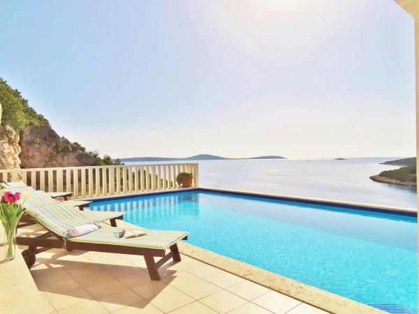 Villa SEA FANTASY - Osobe : 7 - Spavaće sobe : 3 - Privatni bazen Od 240 € / noć Dobrodošli u Villa Sea Fantasy ! Opustite se i uživajte u potpunoj privatnosti na odmoru u Hrvatskoj u uvali Ljubljeva u blizini grada Trogira u splitskom području . S izravnim pristupom na more ova mediteranska vila za odmor s privatnim bazenom nalazi se samo 300m od šljunčane plaže u uvali Ljubljeva na srednjodalmatinske obale i 30 metara od male privatne betonske plaže. Villa Sea Fantasy je šarmantna kuća sa panoramskim pogledom na more komforna za ugodan boravak do 7 osoba sa 3 spavaće sobe , 2 kupaonice i prekrasnom mediteranskim vrtom . Vila je ekskluzivni smještaj idealan za manje grupe , obitelji s djecom , kao i romantični bijeg na jadransko more daleko od stresne svakodnevnice. Više detalja na www.croatianmediterraneanvillas.com